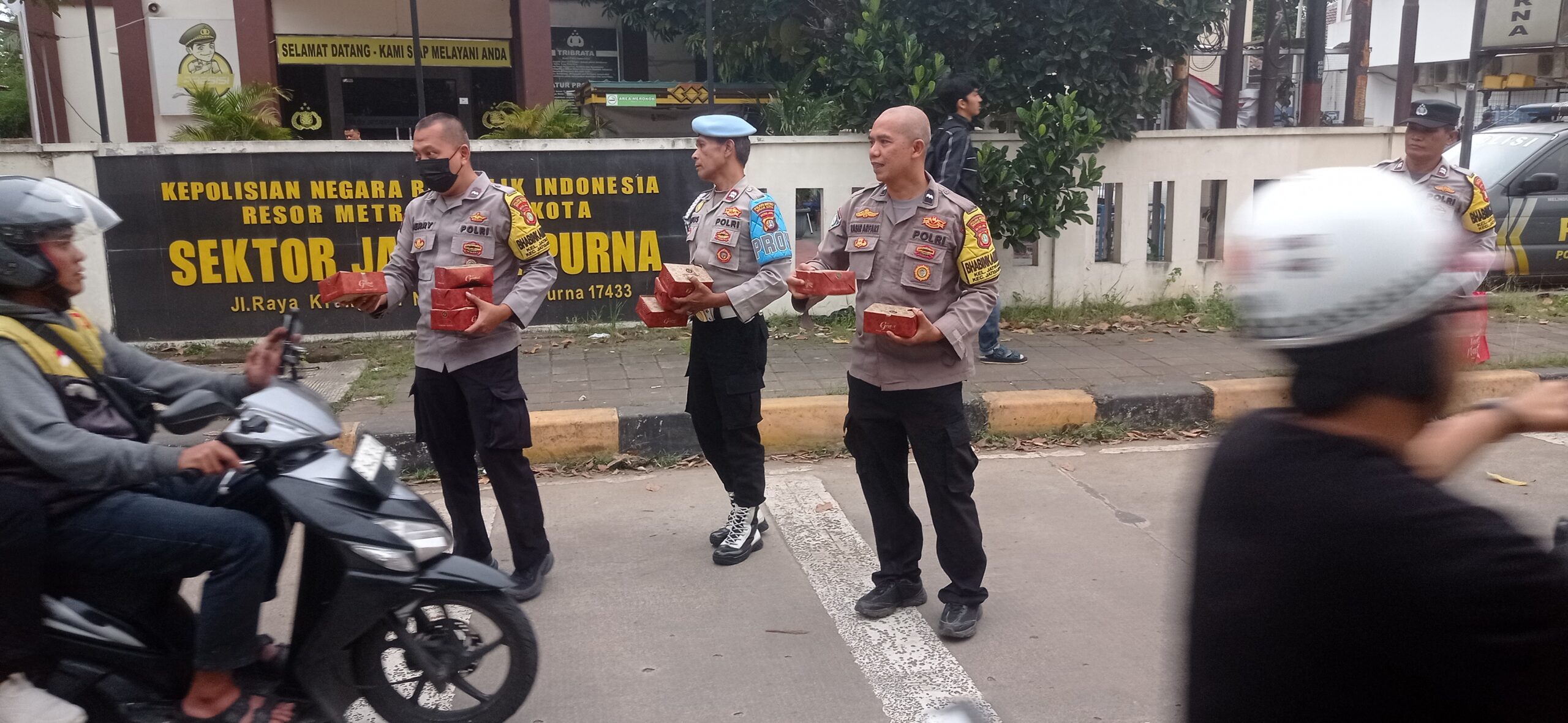 Bulan suci Ramadan selalu menghadirkan suasana yang berbeda. Selain menjadi waktu untuk meningkatkan ibadah dan memperbaiki diri, Ramadan juga menjadi momentum untuk menumbuhkan kepedulian terhadap sesama. Semangat itulah yang terlihat dari jajaran personel Polsek Jatisampurna yang berada di bawah naungan Polres Metro Bekasi Kota saat turun langsung ke jalan membagikan takjil kepada para pengendara di Jalan Raya Kranggan nomor 1.