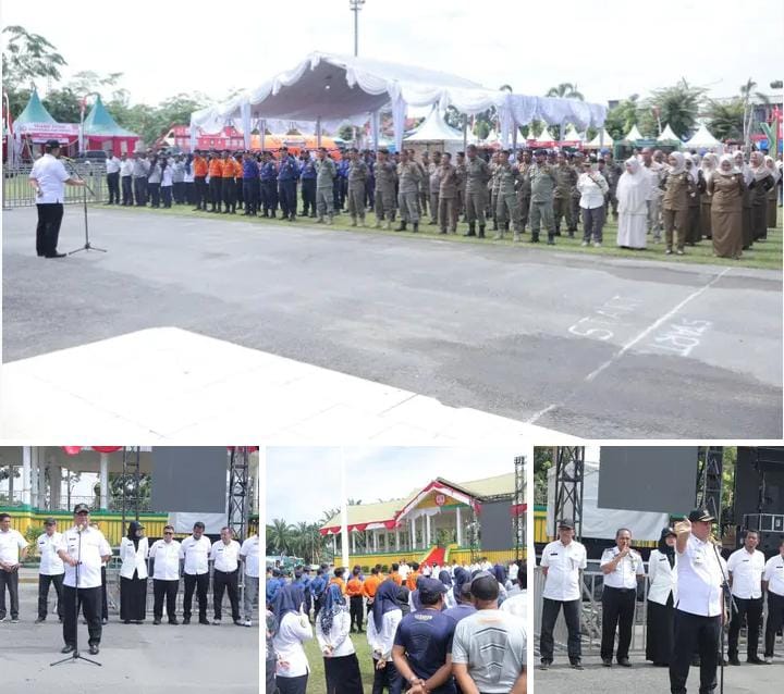 Aceh Tamiang – ragamrajawalinusantara.id | Bupati Aceh Tamiang, Irjen. Pol (P) Drs. Armia Pahmi, MH pimpin Apel Siaga Petugas Satpol PP dan WH bersama Petugas Dinas Perhubungan, Damkar, BPBD dalam rangka Pengamanan dan Penertiban selama Pelaksanaan Gebyar Kemerdekaan di Lapangan Tribun Kantor Bupati setempat, pada Rabu (20/8/25).