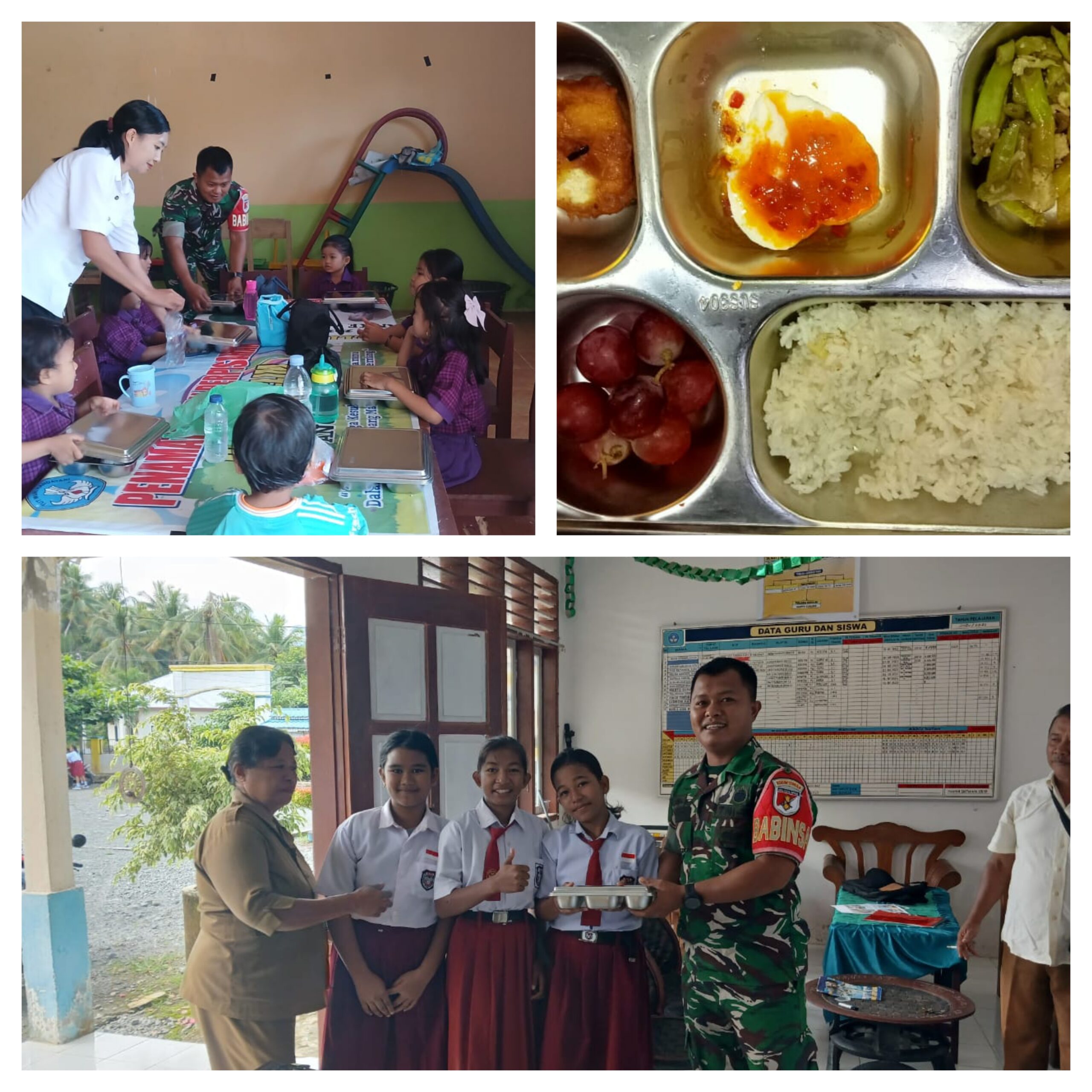 Selain itu, Kopda Dulianto selaku Babinsa juga berperan dalam memberikan motivasi dan edukasi kepada siswa mengenai pentingnya mengonsumsi makanan bergizi untuk mendukung pertumbuhan dan prestasi belajar.