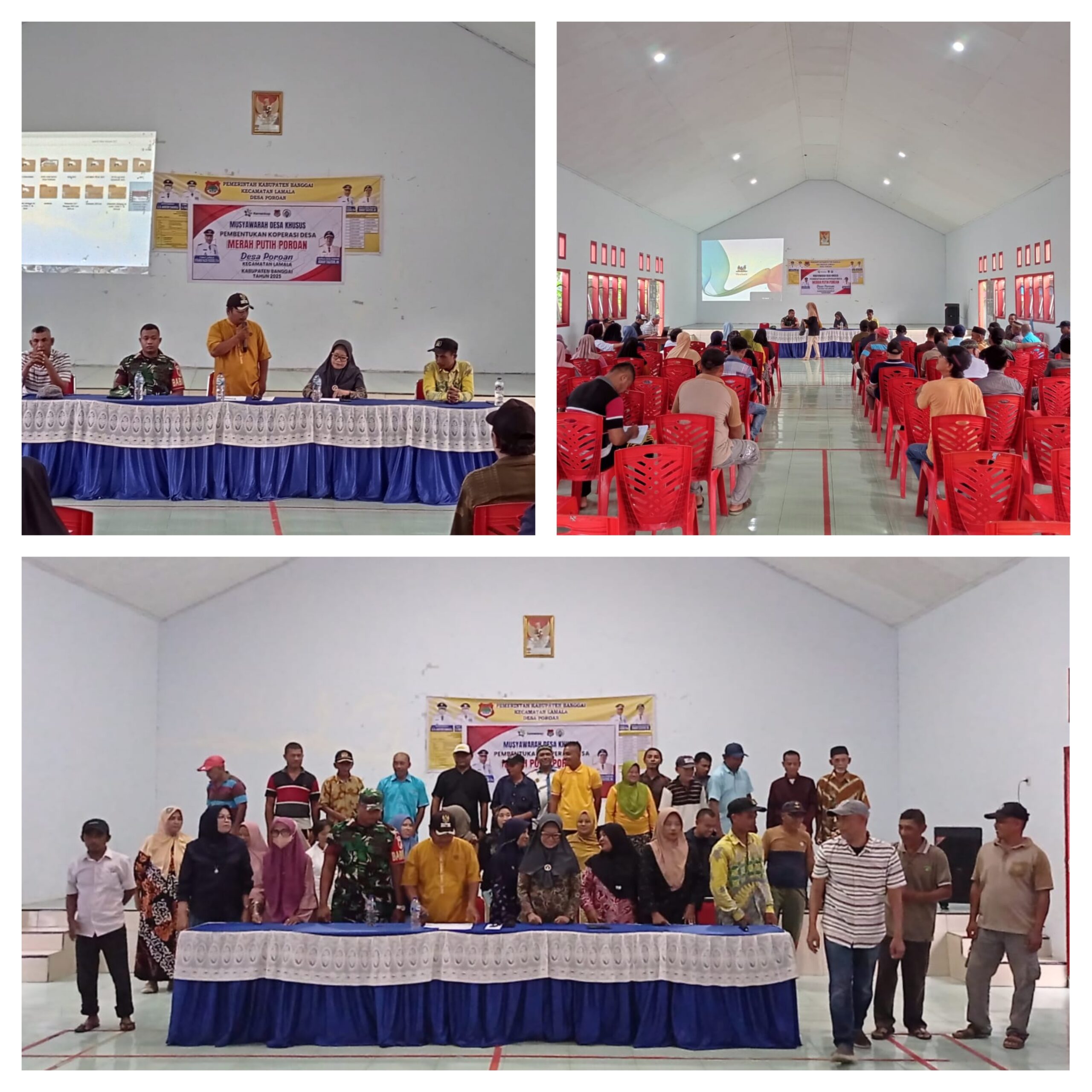 Dalam musyawarah tersebut dibentuk kepengurusan Koperasi Merah Putih yang dipimpin Camat Lamala Bpk Muhammad Saleh Padekes S.Sos diwakili ibu kasipebb Misna wati manasai S.S, Ws.Danramil 06 Lamala Diwakili Sertu i. Wayan Roki ,Kepala Desa Poroan Bpk Risman S.H, Ketua BPD poroan Bpk Rahmidun ligouw bersma anggota ,Pendamping kecamatan, Pendamping Desa Dan Para Tokoh Agama ,Adat dan Masyarakat-+ 70 Orang