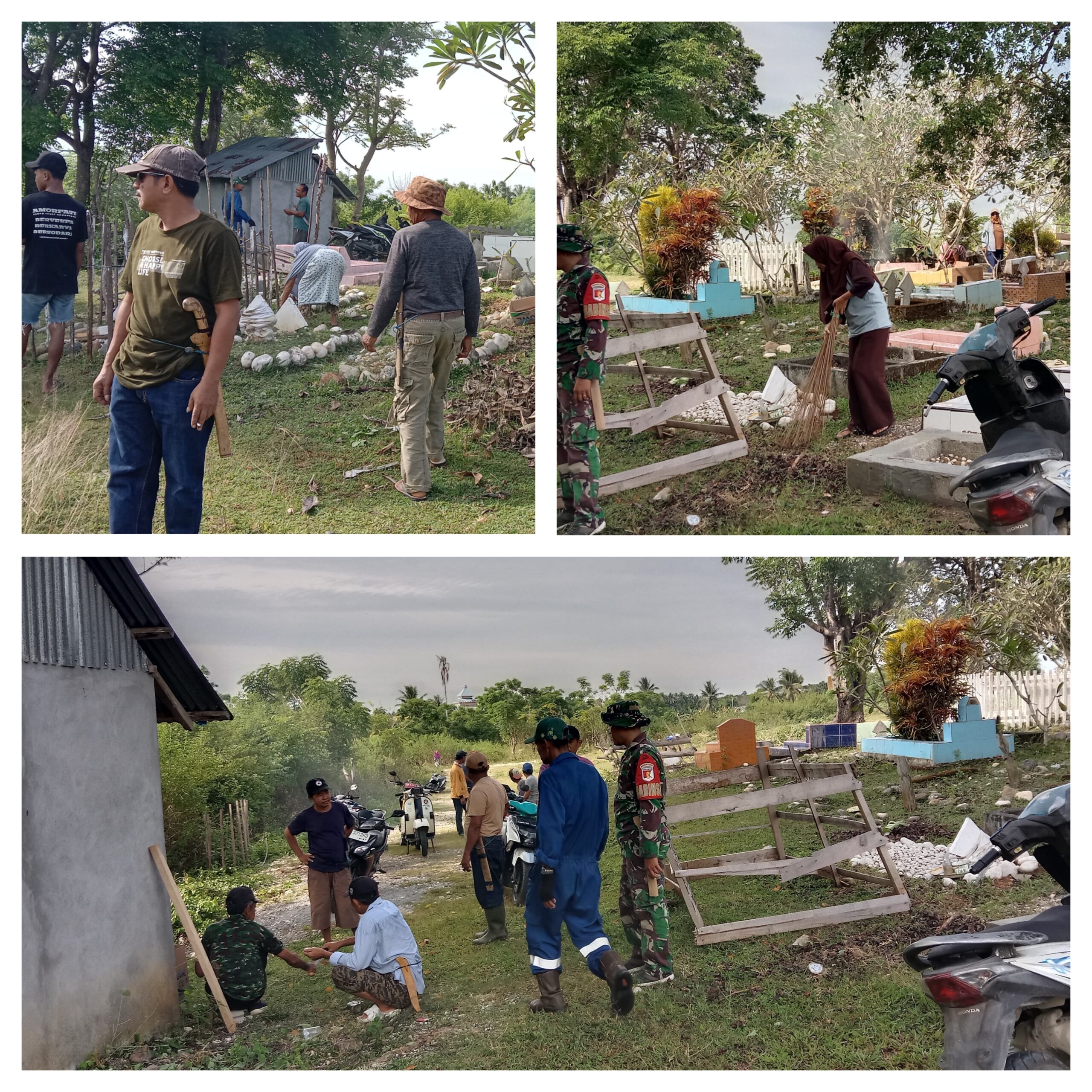Babinsa Kerja Bhakti Bersama Pemerintahan Dan Warga Bersihkan Tempat Pemakaman Umum (TPU) Kelurahan