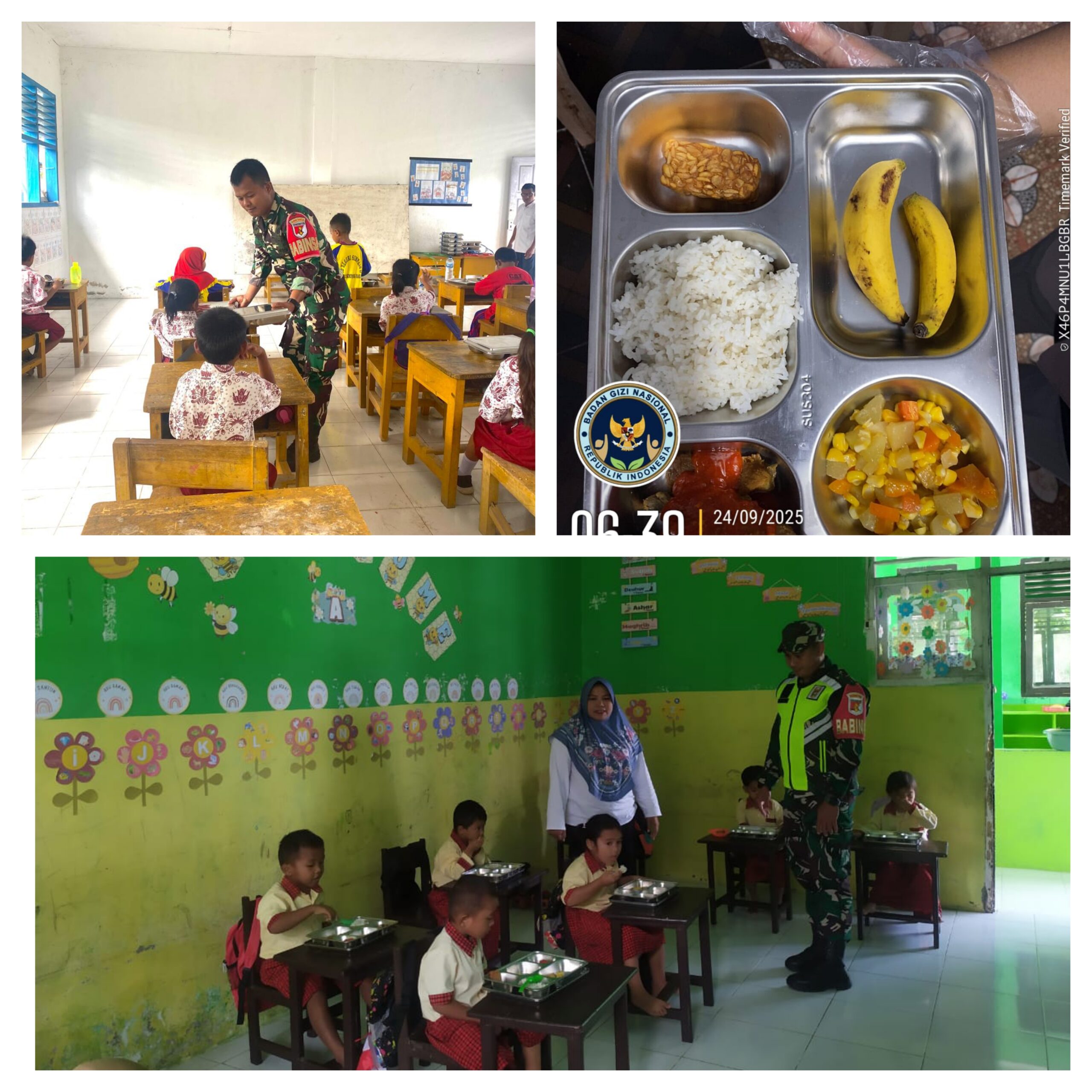 Babinsa Koramil 02/Bunta Dampingi Penyaluran Makanan Bergizi dari SPPG Di Wilayah Kodim 1308/LB