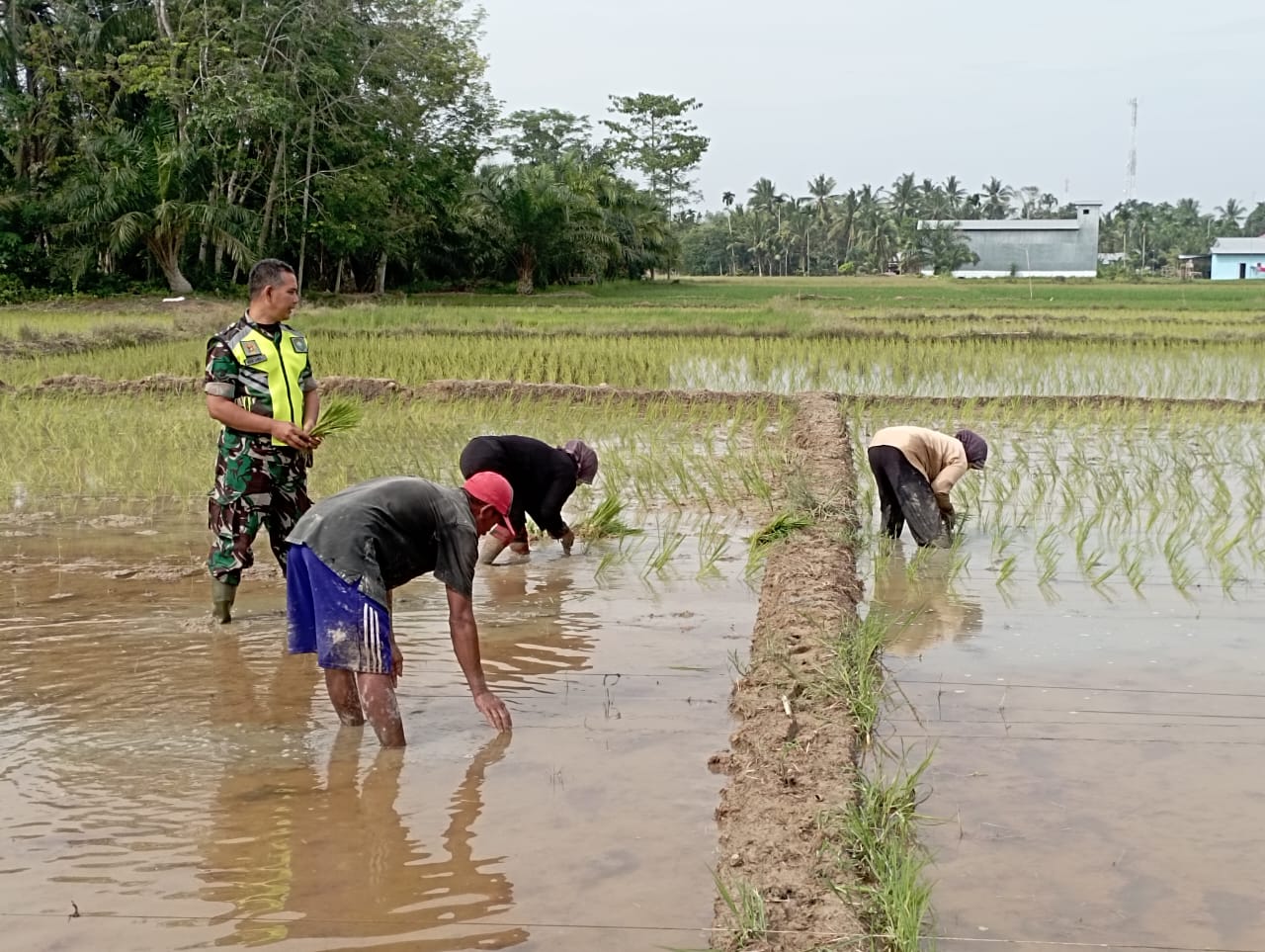 Babinsa Koramil 02/Krb Dampingi Petani Tanam Padi untuk Ketahanan Pangan