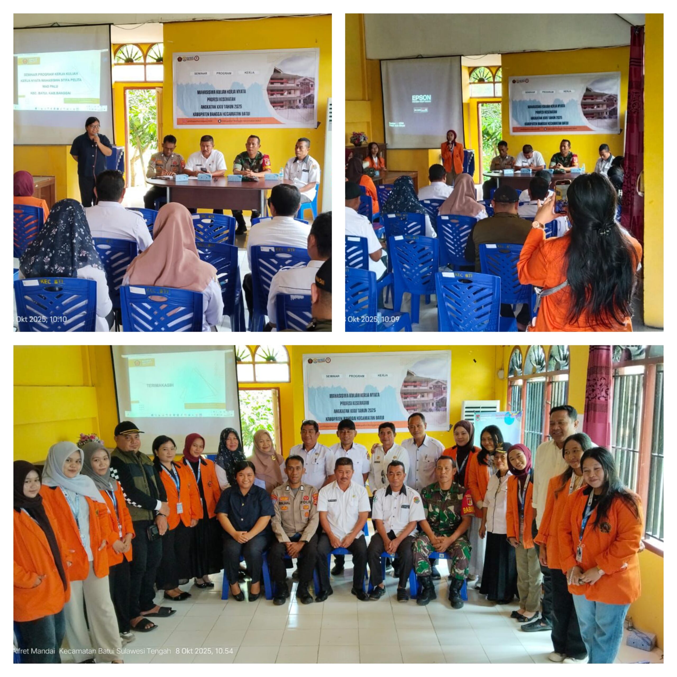 BATUI,Ragamrajawalinusantara.id  – Babinsa Koramil 03/Batui Kodim 1308/LB, Pelda Ariyanto, menghadiri kegiatan Seminar Program KKN Mahasiswa STIFA PELITA MAS Palu, yang berlangsung di Kantor Camat Batui, Kecamatan Batui, Kabupaten Banggai, Rabu pagi, 08/10/2025.