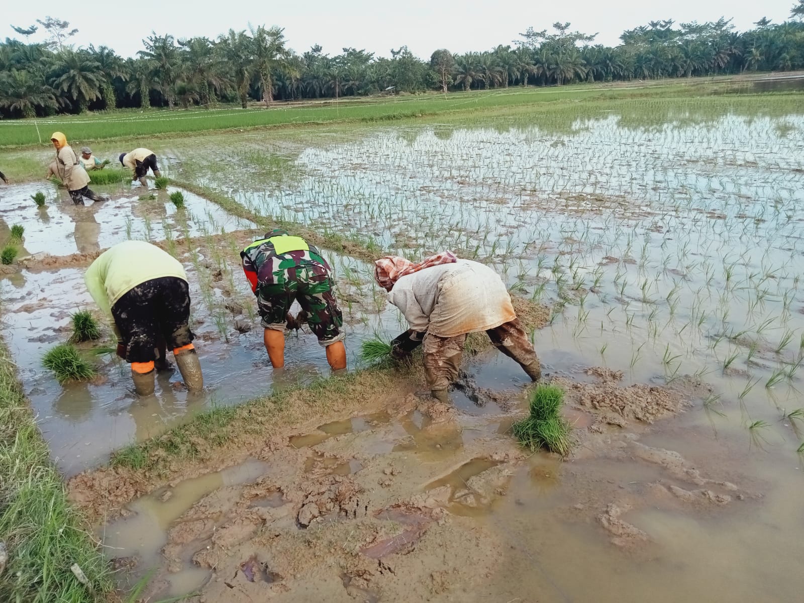 Aceh Tamiang – Ragamrajawalinusantara.id | Babinsa Koramil 04/Bendahara, Kodim 0117/Aceh Tamiang Sertu Iskandar Muda melaksanakan pemantauan wilayah dan melaksanakan pendampingan pekerjaan sawah/penanaman bibit padi di sawah warga di Desa Tanjung Lipat I, Kecamatan Bendahara, Kabupaten Aceh Tamiang. Kamis (27/02/2025)