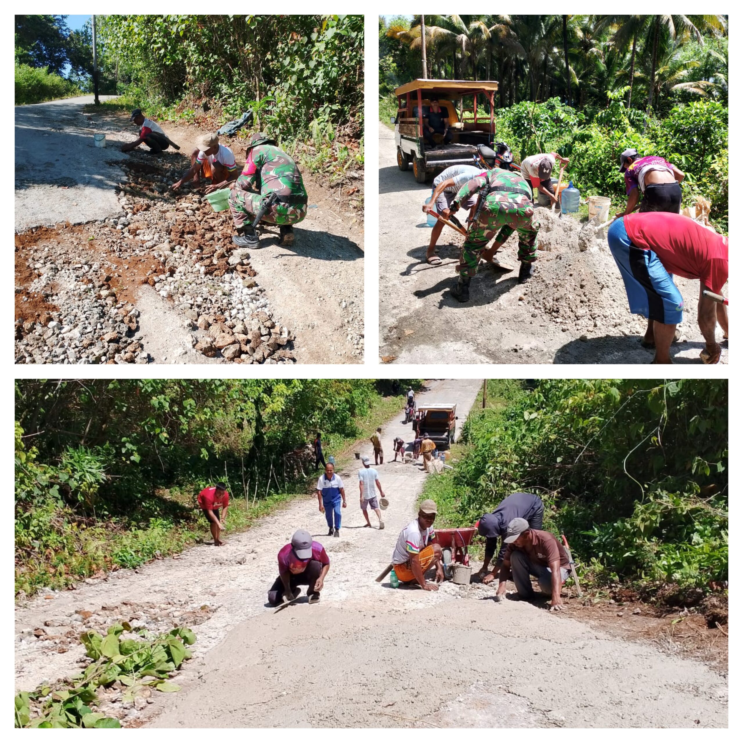 BULAGI,Ragamrajawalinusantara.id  —  Dalam mendukung kelancaran mobilitas masyarakat di wilayah desa binaan, Babinsa Koramil 1308–12/Bulagi, Kodim 1308/LB, Koptu Jalaludin ,Camat Bulagi Selatan Destaman Dala, S.Sos. bersama Pegawai Kecamatan , Kades Suit berserta Aparat Desa Dan warga masyarakat bergotong royong melaksanakan Karya Bakti Penimbunan Dan Pengecoran Jalan Rusak Di Antara Desa Suit dan Desa Sabelak., Bertempat Di Desa Suit Kecamatan Bulagi Selatan Kabupaten Banggai Kepulauan.Jumat (31/12025).