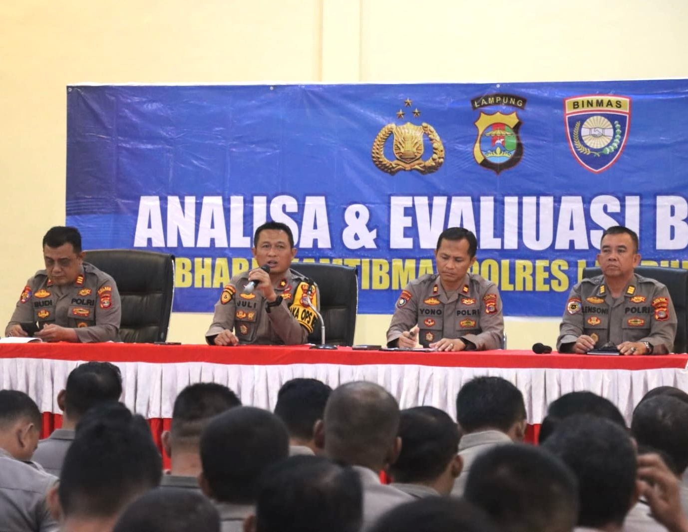 Hal itu disampaikan Kapolres Lampung Tengah, Polda Lampung AKBP Andik Purnomo Sigit, S.H., S.I.K., M.M melalui Wakapolres Kompol Juli Sundara, S.Pd saat memimpin Analisa dan Evaluasi (Annev) Bulanan di aula Atmani Wedhana Mapolres setempat, pada Jumat (21/3/25) pagi.