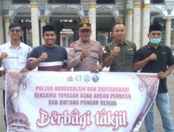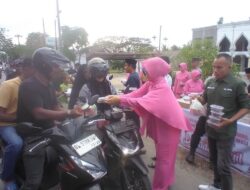 Aceh Timur: Ragamrajawalinusantara.id_ Polsek Nurussalam bekerja sama dengan Yayasan Asnan Ahsan Perkasa dan Yayasan Bintang Pangan Kemiri yang berbasis di Bagok, Kecamatan Nurussalam, Kabupaten Aceh Timur, menggelar kegiatan pembagian takjil gratis di jalan lintas provinsi pada Jumat, 13 Maret 2026.