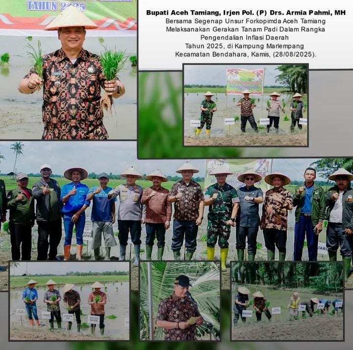 Aceh Tamiang — ragamrajawalinusantara.id | Salah satu upaya strategis Pemerintah Kabupaten Aceh Tamiang dalam rangka menjaga stabilitas harga pangan, khususnya beras adalah dengan melaksanakan gerakan tanam padi dan jagung. Ini merupakan langkah kongkrit yang dilakukan dalam rangka pengendalian inflasi di daerah tahun 2025.