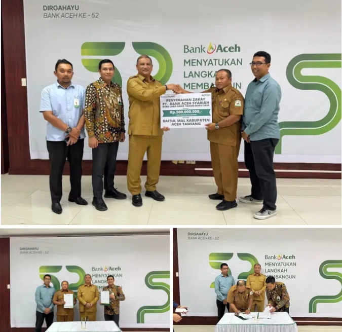 Sementara itu, Kepala Cabang Bank Aceh Kualasimpang, Afrian mengatakan, penyerahan zakat perusahaan oleh Bank Aceh menjadi bagian dari tanggung jawab sosial dan implementasi prinsip syariah dalam perbankan. Diterangkannya, dengan adanya dukungan ini, diharapkan semakin memperkuat sinergi antara Pemerintah Daerah, lembaga perbankan, dan Baitul Mal dalam mewujudkan kesejahteraan masyarakat Aceh Tamiang