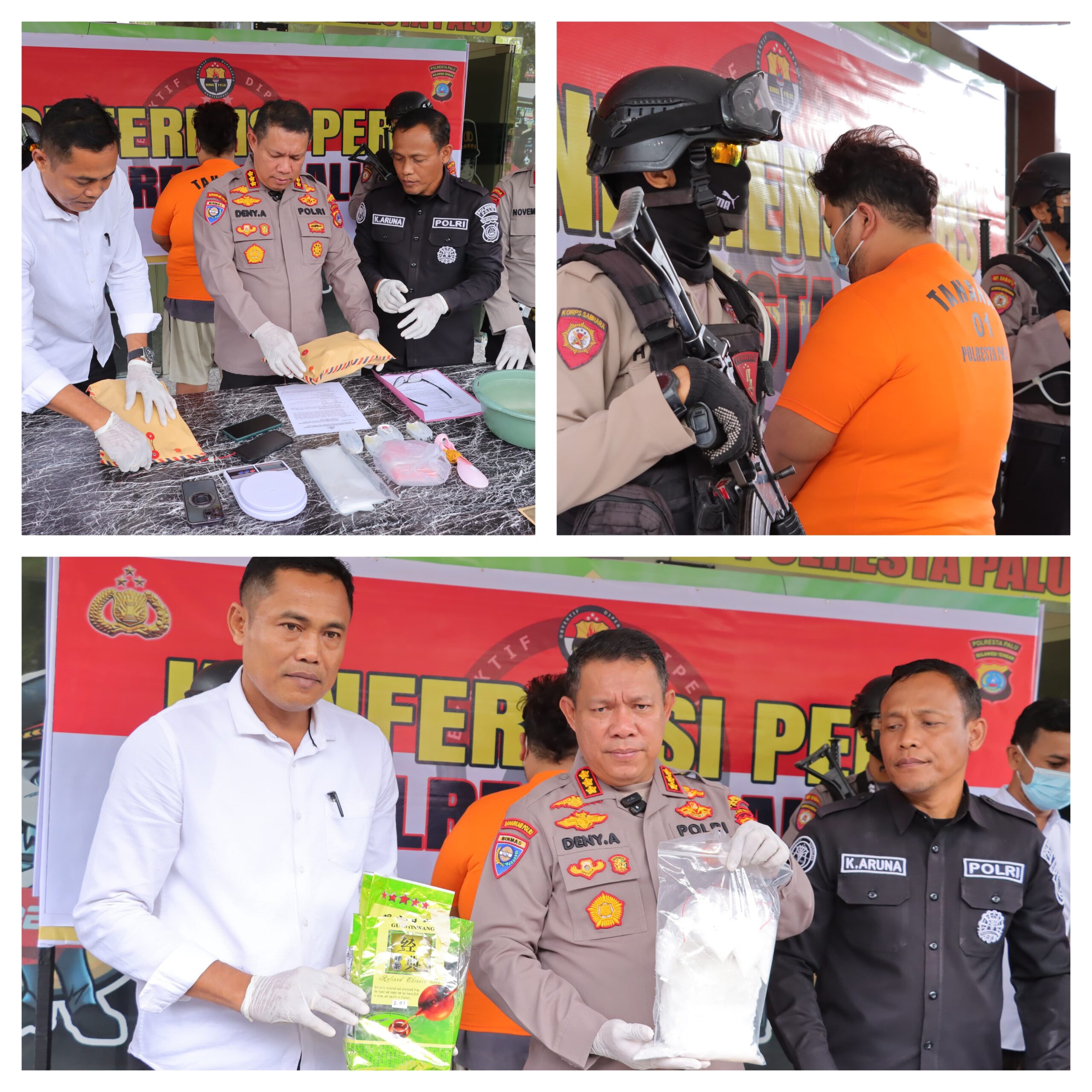 “Dari tangan tersangka, kami mengamankan 13 paket sabu dengan berat total 2.454,4479 gram. Tersangka diduga kuat sebagai pelaku ,penguna dalam jaringan peredaran sabu di wilayah Palu,” ungkap Kapolresta Palu Kombes Pol. Deny Abrahams, S.H., S.I.K., M.H., dalam konferensi pers, Rabu (21/5).