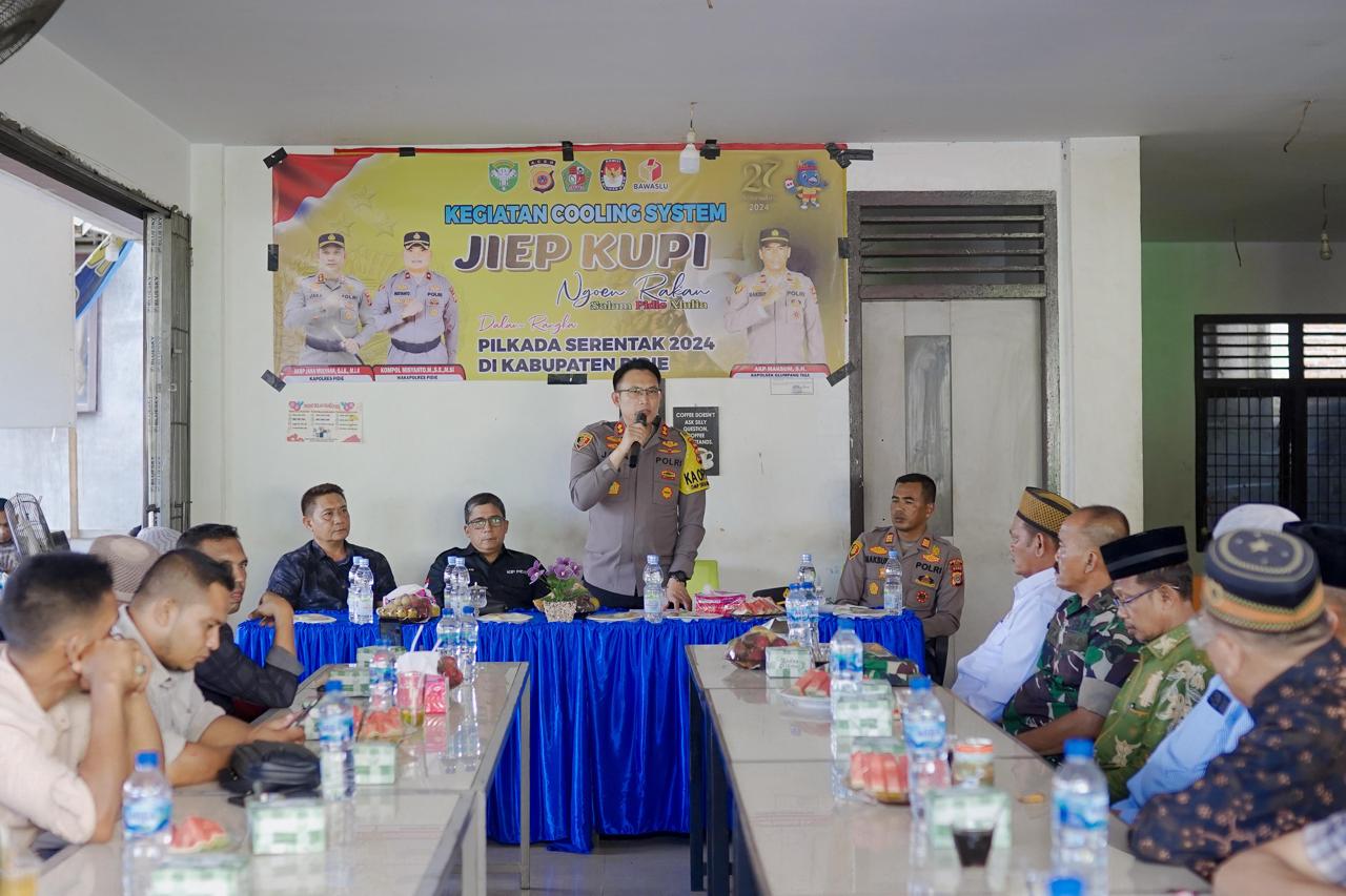 Kapolres Pidie AKBP Jaka Mulyana, SIK, MH mengatakan Coffe Talk atau sering disebut juga Jiep Kupi Ngon Rakan yang digelar saat ini, merupakan bagian dari upaya cooling system yang diterapkan Polres Pidie menjelang Pilkada serentak 2024 mendatang di Kabupaten Pidie.