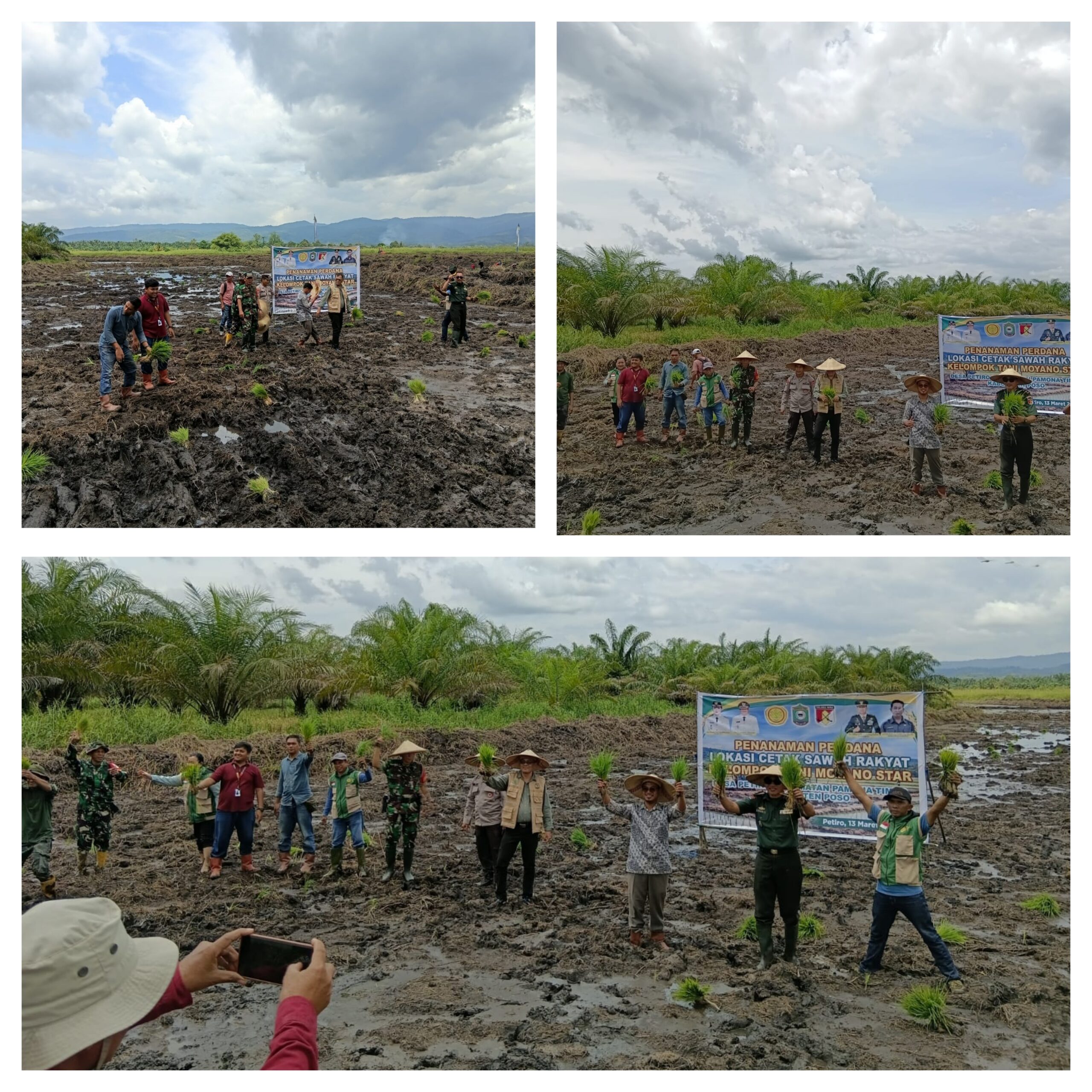 Diwakili Oleh Kasdim 1307/Poso Mayor inf Asrar Zees Memimpin secara langsung kegiatan Tanam Perdana Padi Sawah di Lokasi Cetak Sawah Rakyat (CSR), Bertempat Di Desa Petiro Kecamatan Pamona Timur kabupaten Poso, pada Selasa, (17 Maret 2026).