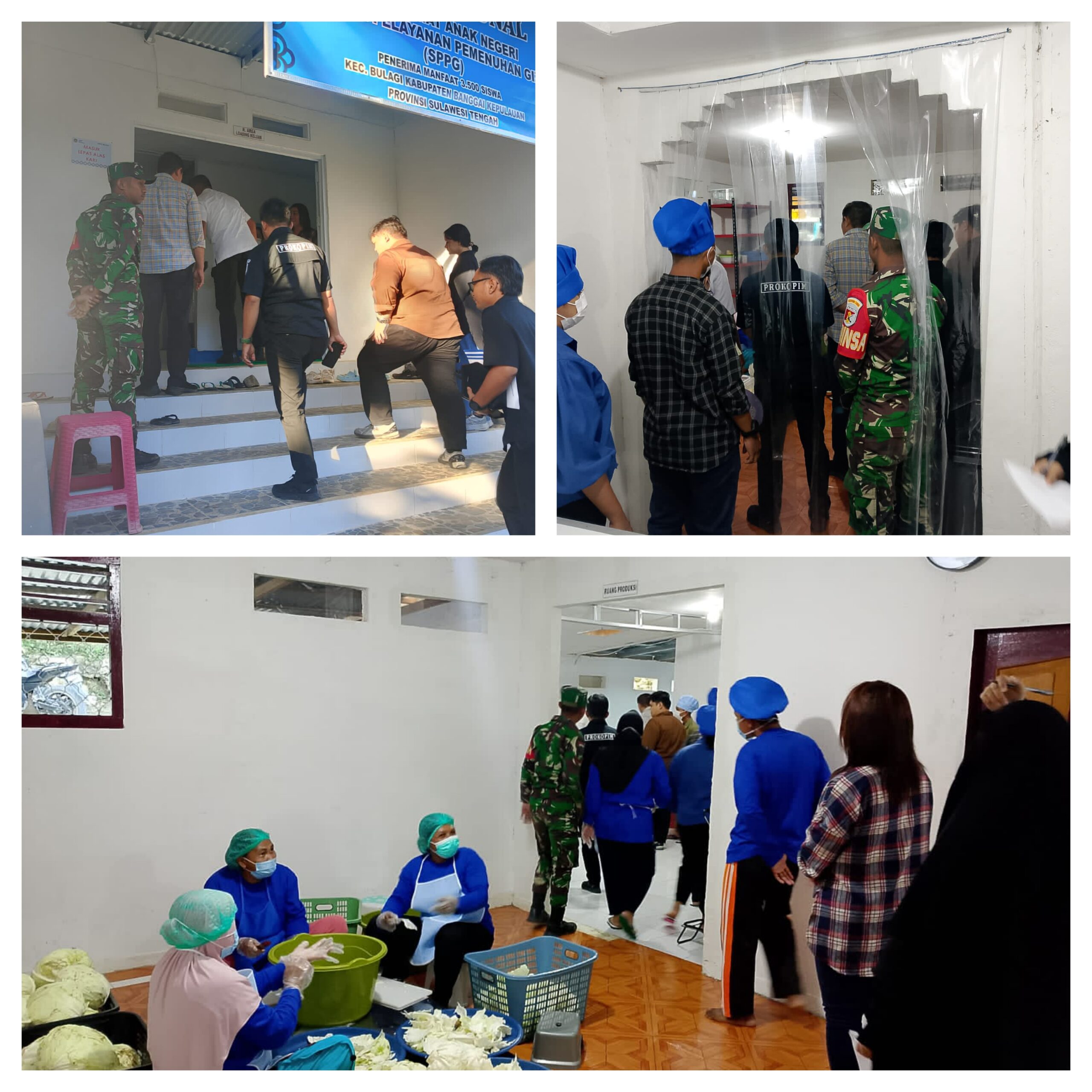 Selain melakukan kunjungan ke sekolah, rombongan juga mengecek langsung proses distribusi makanan yang dilakukan oleh beberapa dapur sehat yang berperan penting dalam penyediaan menu bergizi ini diantaranya Yayasan Pelita Perabu Berjaya Indonesia Kecamatan Bulagi Kabupaten Bangkep Provinsi Sulteng.