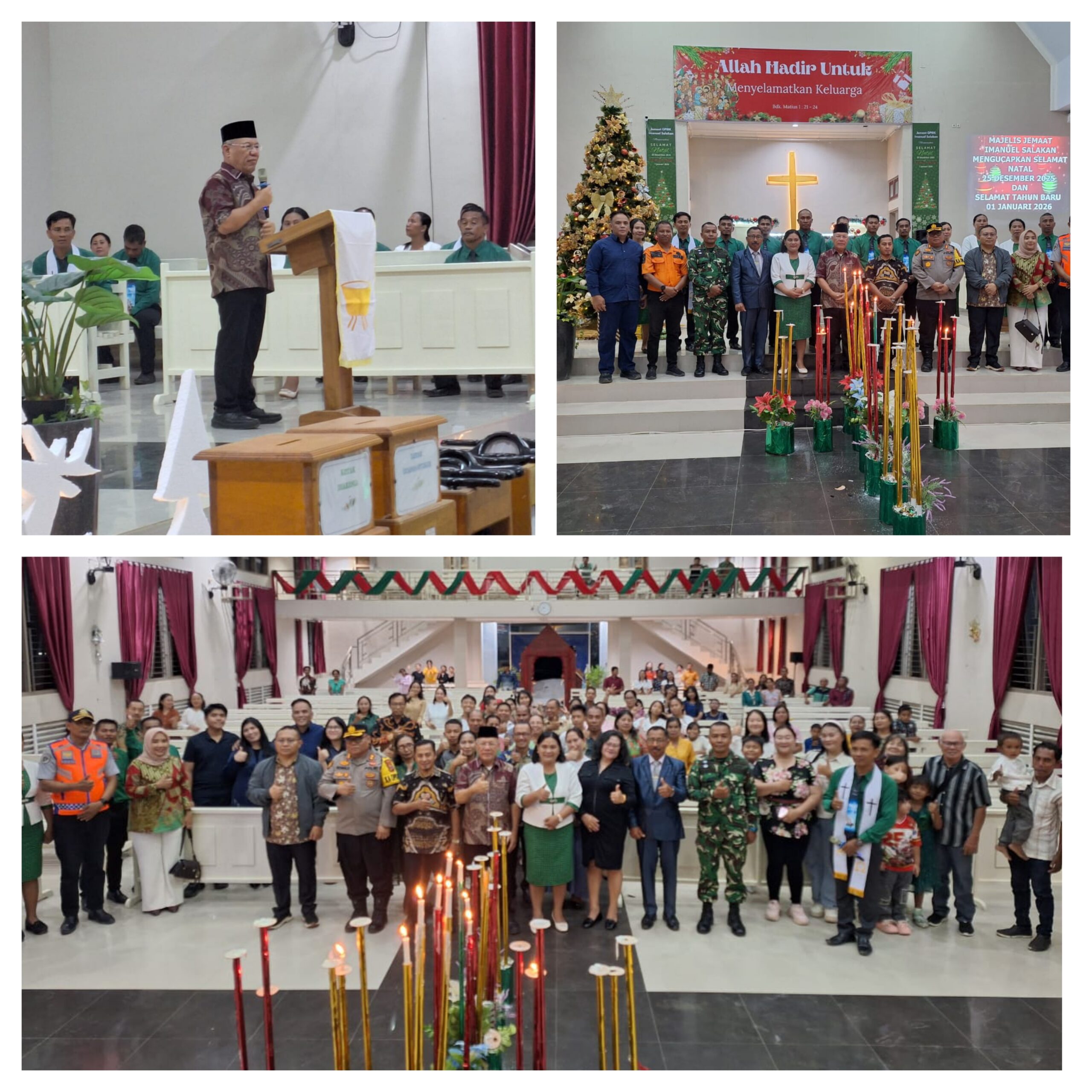 BANGKEP,Ragamrajawalinusantara.id – Bertempat Rujab Bupati Bangkep Jalan Poros Jalur Dua Komplek Rujab Bupati, Salakan Kabupaten Banggai Kepulauan, Propinsi Sulawesi Tengah, Dandim 1308/LB Diwakili Pj Pabung 1308/LB Letda Kav. Rahmad R. Luande Menghadiri Natal Gabungan Pemda, Dprk, Tni/Polri Dominasi Gereja Gpibk Imanuel Salakan Dan Organisasi Masyarakat Serta Seluruh Masyarakat Kab Banggai Kepulauan Natal Berlangsung Dengan khidmat, Rabu (24/12/2025).