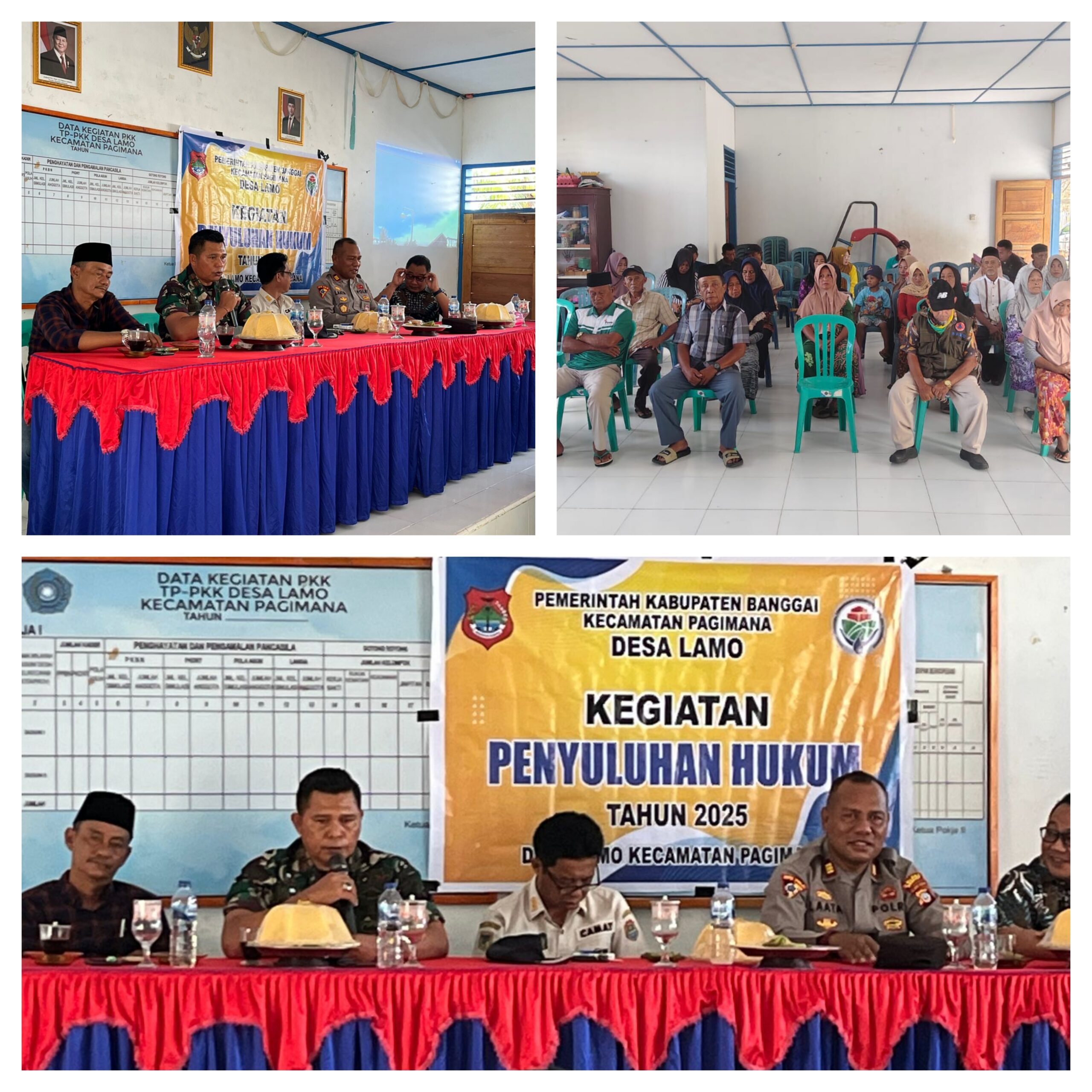 Guna mewujudkan masyarakat yang sadar hukum, maka Koramil 07/Pagimana memberikan Sosialisasi Pengertian, Pelaksanaan Dan Penyuluhan Hukum Di Wilayah Desa Binaan Dan Koramil 07/Pagimana menyelenggarakan kegiatan penyuluhan hukum Bertempat Di Aula Desa Lamo Kecamatan Pagimana Kabupaten Banggai. Penyuluhan kali ini mengusung materi tentang masalah Meningkatkan kesadaran dan pemahaman masyarakat tentang hukum, Mengurangi terjadinya konflik Dan Meningkatkan Keamanan dan Ketertiban.Jumat