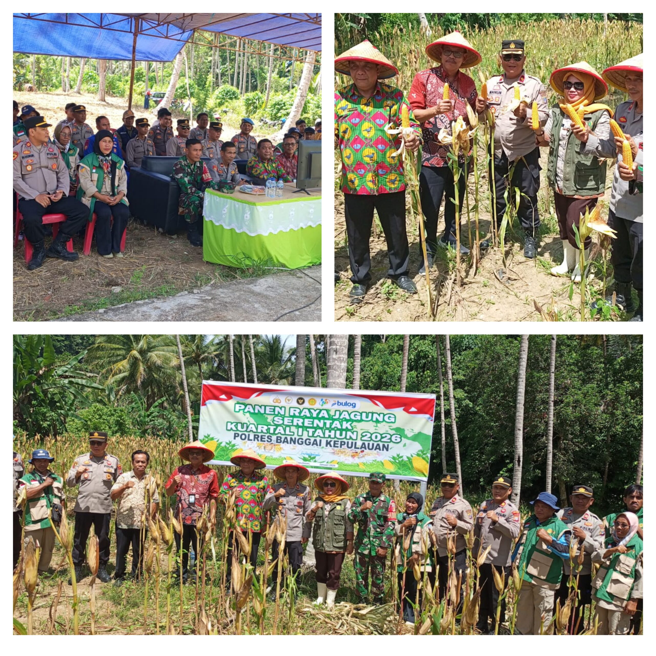 Danramil 10/Salakan Di wakili Babinsa Serda Sunarto.M menghadiri kegiatan penanaman jagung Serentak di lahan pasantren jagung serentak yang berlangsung Bertempat Di Desa Luksagu Lahan Perkebunan Produktif Polres Bangkep Kecamatan Tinangkung Utara Kabupaten Banggai Kepulauan.Kamis (08/01/2026)