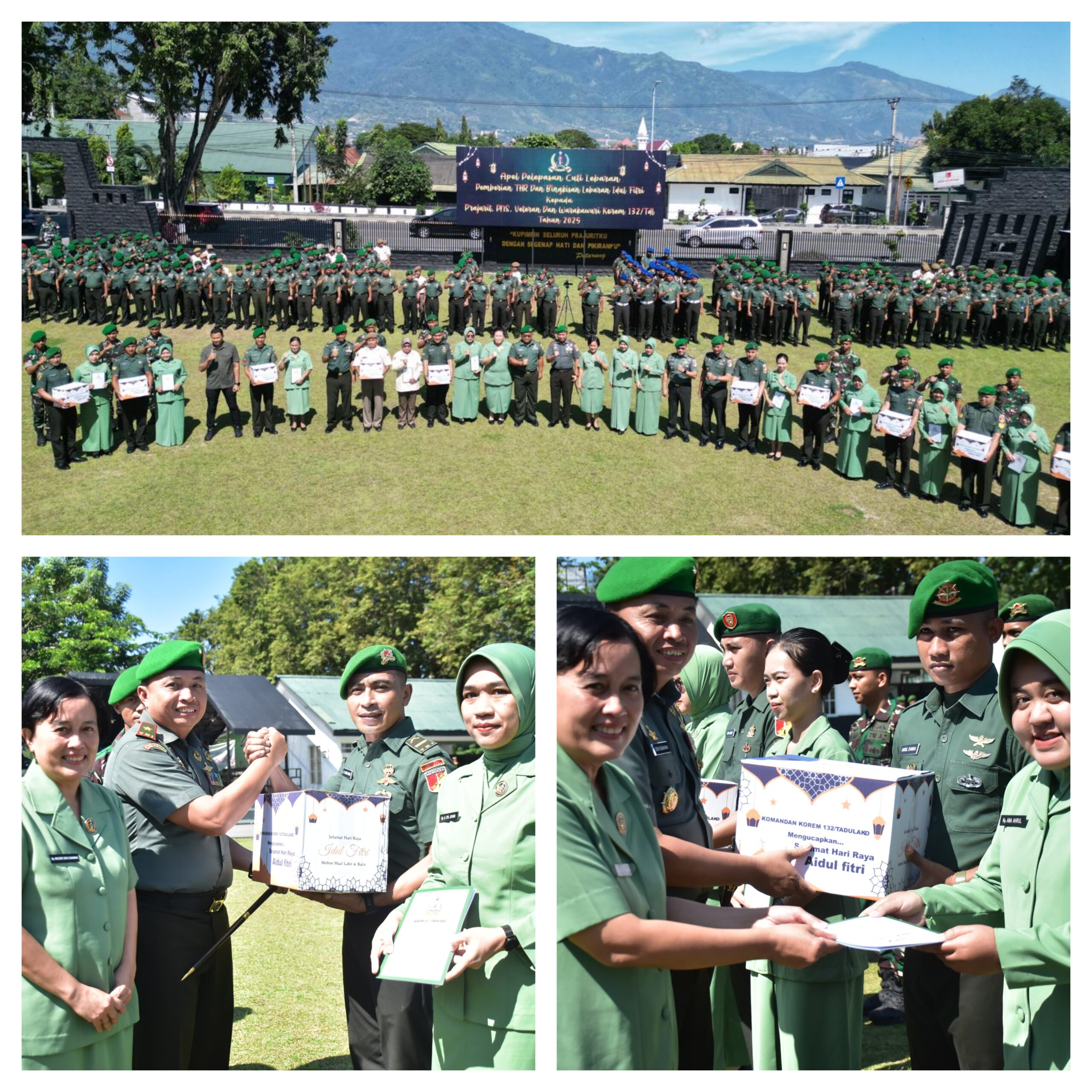 Sebagai wujud kepedulian dan perhatian kepada keluarga besar Korem 132/Tadulako, dalam kesempatan ini, Danrem menyerahkan Bingkisan KASAD,THR dan bingkisan Korem 132/Tdl kepada prajurit, PNS, Veteran dan Warakawuri Korem 132/Tdl .Ia berharap pemberian THR dan Bingkisan ini dapat memberikan manfaat dan menambah kebahagiaan dalam menyambut Hari Raya Idul Fitri.