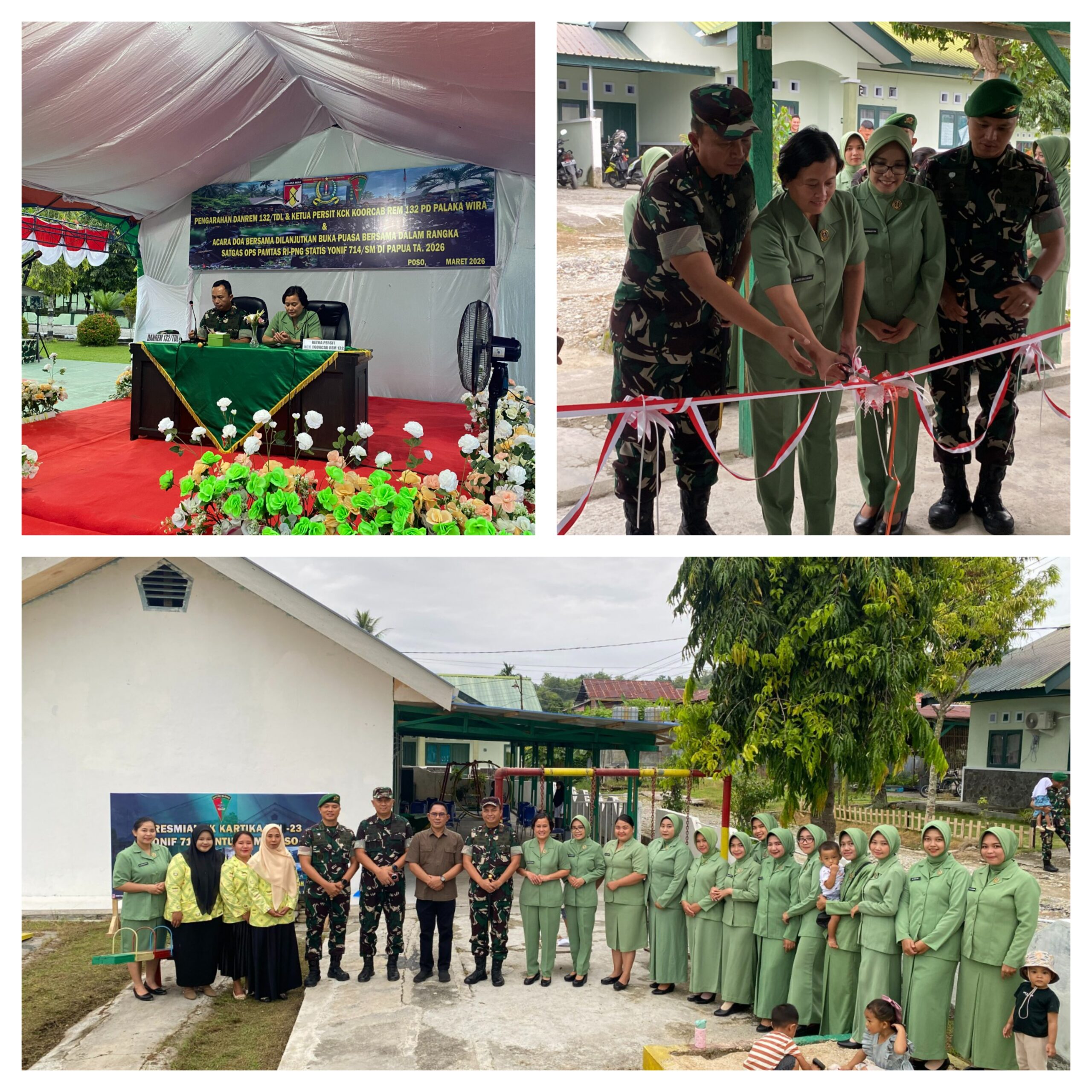 POSO,Ragamrajawalinusantara.id – Komandan Korem 132/Tadulako (Danrem 132/Tdl) Brigjen TNI Deni Gunawan, S.E., melaksanakan peresmian Taman Kanak-Kanak (TK) dan Mess di lingkungan Yonif 714/Sintuwu Maroso, yang dirangkaikan dengan kegiatan buka puasa bersama serta doa bersama dalam suasana penuh kebersamaan di bulan suci Ramadan.
