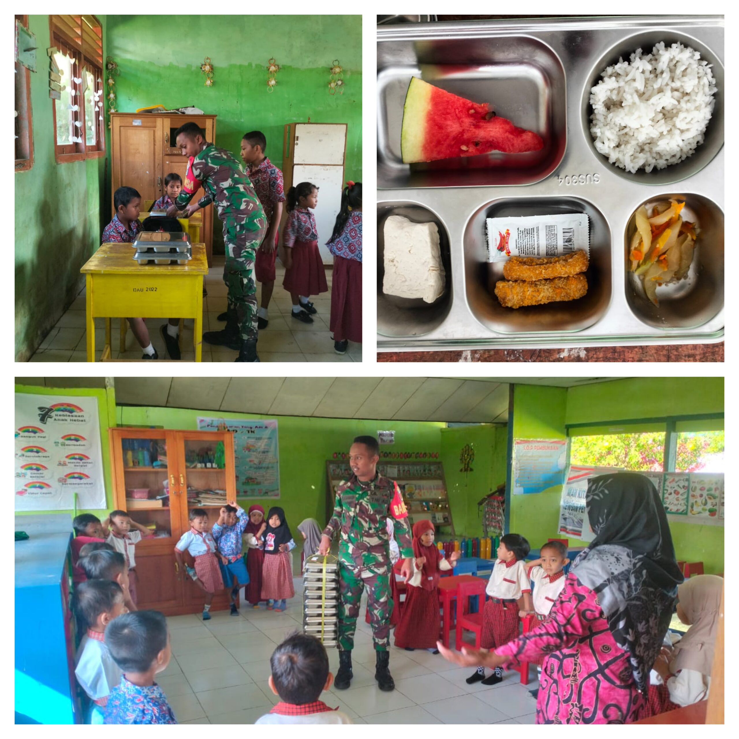 Dalam pelaksanaannya, Babinsa Koramil 1308–12/Bulagi Serda Sigit turut mendampingi dan memastikan distribusi makanan bergizi terlaksana dengan baik dan lancar. Mereka juga memberikan motivasi kepada para siswa agar selalu menjaga pola makan sehat serta menerapkan kebiasaan hidup bersih dan sehat.
