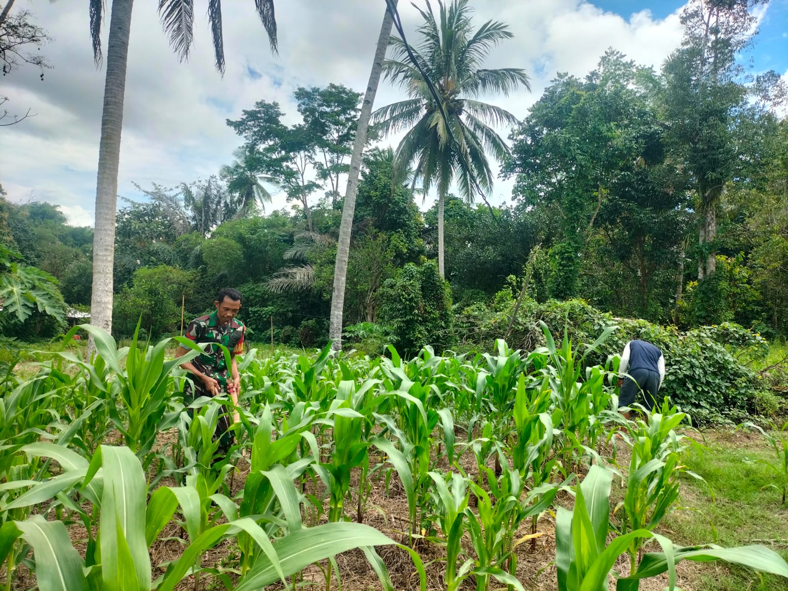 Babinsa terjun langsung ke kebun milik warga untuk memberikan motivasi bagaimana cara perawatan tanaman jagung yang lebih baik lagi, Tindakan ini bukan hanya sebagai bentuk kepedulian, tetapi juga sebagai wujud dukungan nyata Babinsa kepada warga binaannya.