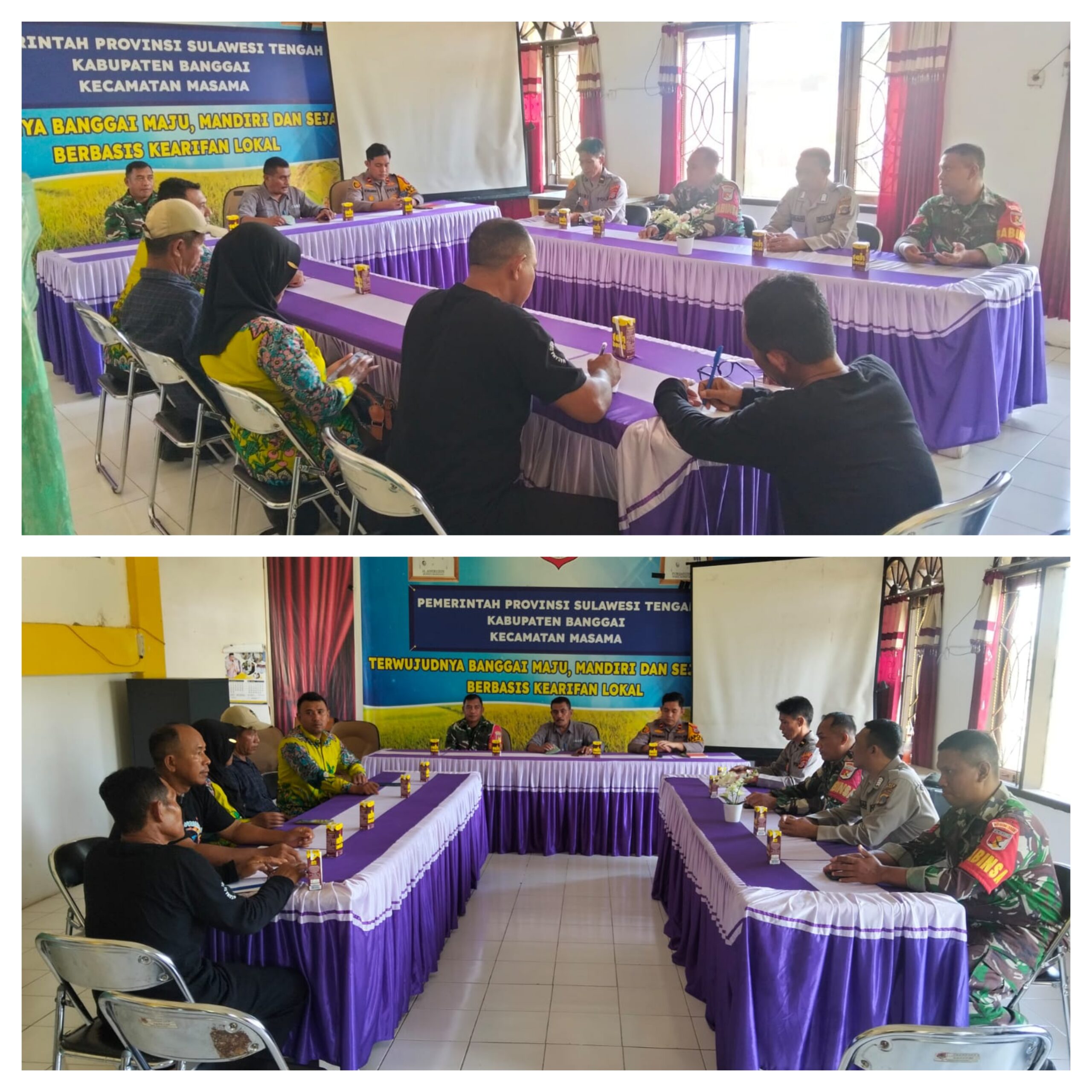 LAMALA, Ragamrajawalinusantara.id — Babinsa Koramil 06/Lamala ,Kodim 1308/LB, Serka Haswin Bersama 3 anggota Babinsa Menghadiri Rapat Koordinasi Ketahanan Pangan yang Bertempat Di Aula Kantor Camat Masama Kabupaten Banggai.Kamis