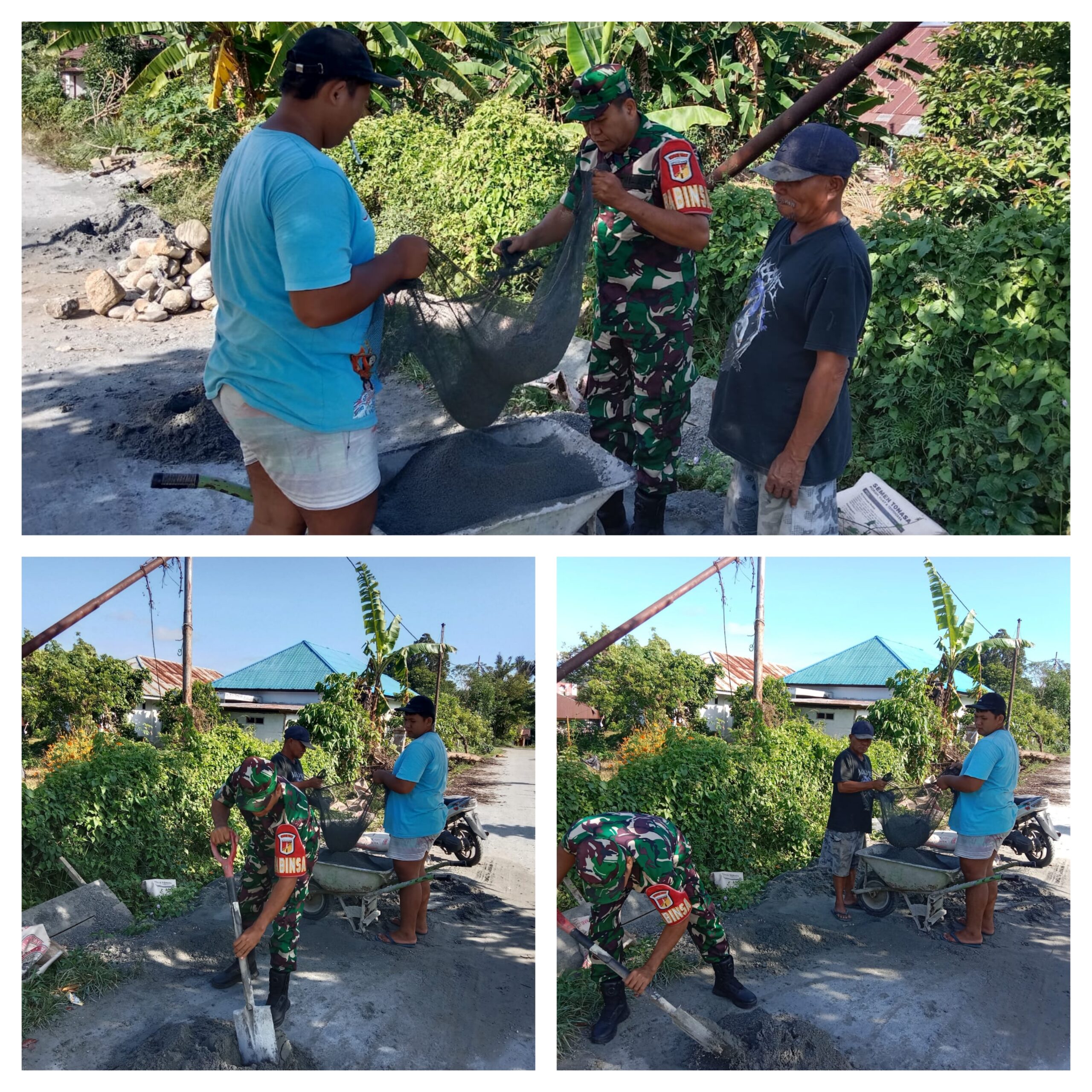 Babinsa yang terlibat langsung melakukan kerja bakti bersama warga Serda Bernard dan staf Pemerintah Tingkat Desa Serta Ketua RT dan Warganya.