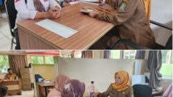 Ketua Rw.12 Jatiwaringin kecamatan pondok gede kota bekasi Hartini Farida Asriningsih sambut kedatangan lurah jatiwaringin Hariri tinjau Bank Sampah yang telah dikelolanya dalam beberapa tahun lalu, 11 Oktober 2025.