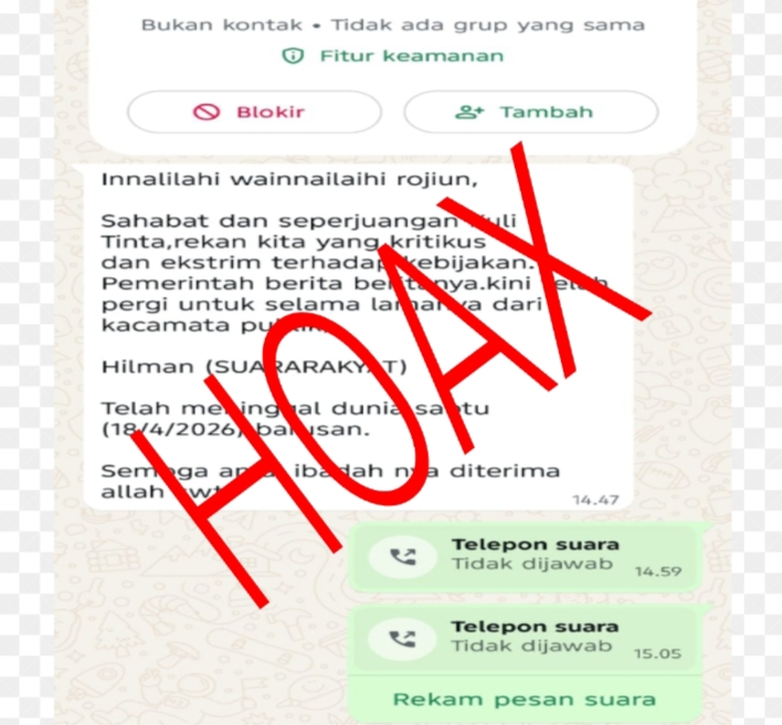 Sukabumi — Publik dikejutkan dengan beredarnya kabar yang menyebutkan Hilman Suara Rakyat telah meninggal dunia pada Sabtu, 18 April 2026. Informasi tersebut dengan cepat menyebar melalui pesan berantai di aplikasi WhatsApp dan memicu kebingungan serta kekhawatiran di kalangan masyarakat, khususnya pembaca media lokal. Namun, setelah ditelusuri, kabar tersebut dipastikan tidak benar dan merupakan hoaks.