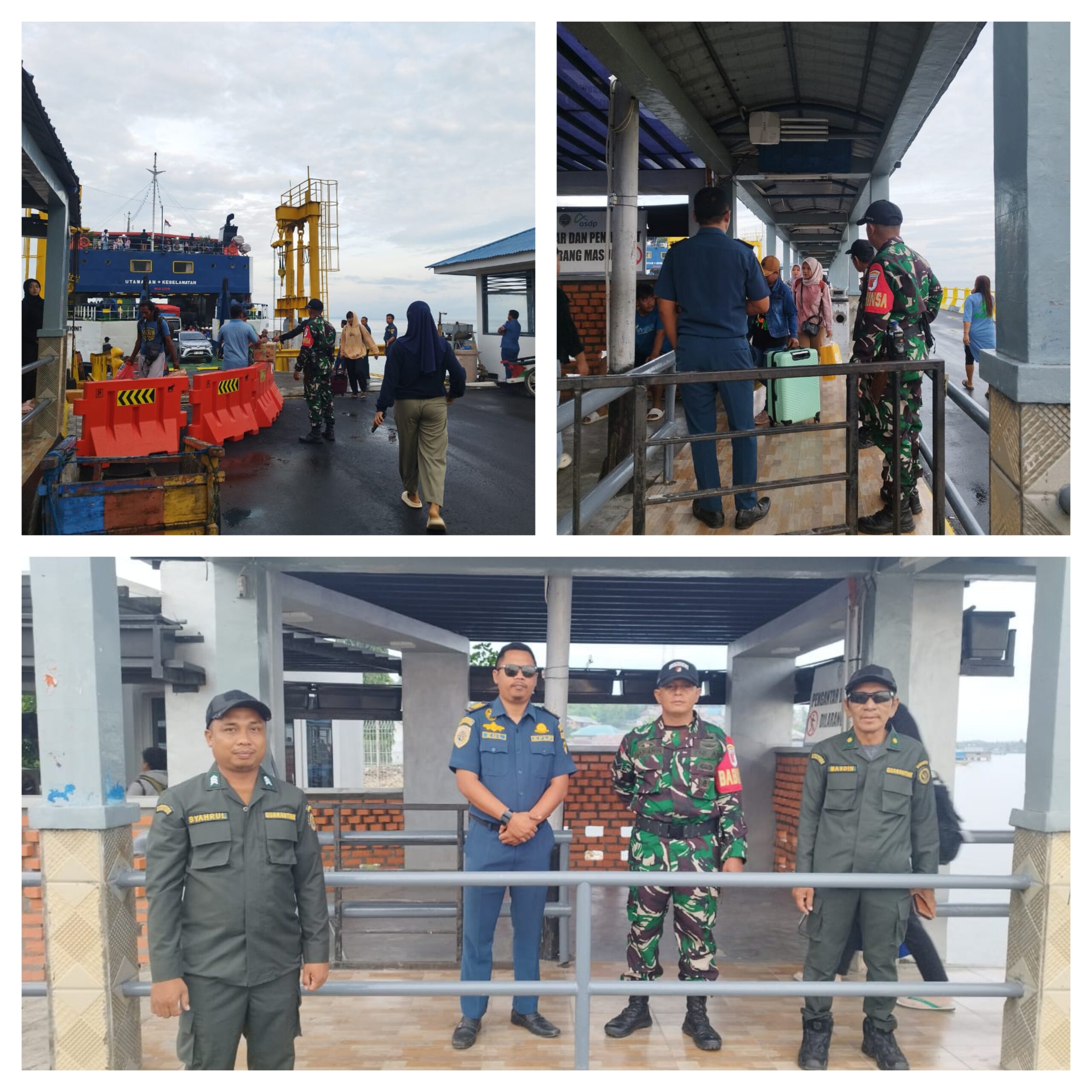 PAGIMANA,Ragamrajawalinusantara.id. –  Dalam rangka memastikan keamanan dan kelancaran perjalanan masyarakat selama libur Natal dan Tahun Baru 2026, Ws Danramil 1308–07/Pagimana Peltu Yanto L Balubi Berserta Anggota Personil Bersama Kepala Karantina Dan Anggota Syahbandar Sebagai Personel Gabungan Pos Pengamanan (Pos Pam) Pelabuhan Ferry Pagimana-Gororntalo melaksanakan pengamanan Kedatangan Kapal Fery Pagimana-Gororntalo.Sabtu Pagi (26/12/25)