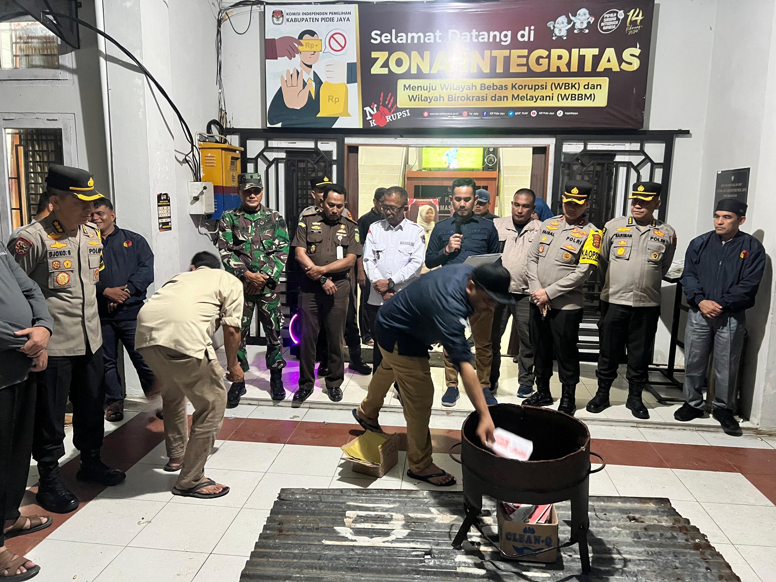 Pidie Jaya – Ragamrajawalinusantara.id |Dalam rangka memastikan transparansi dan integritas menjelang Pemilihan Kepala Daerah (Pilkada) serentak 2024, Komisi Independen Pemilihan (KIP) Pidie Jaya bersama Forum Komunikasi Pimpinan Daerah (Forkopimda) melaksanakan pemusnahan surat suara yang rusak dan kelebihan. Pemusnahan dilakukan dengan cara pembakaran di halaman Kantor KIP Pidie Jaya pada Selasa malam (26/11/2024) pukul 21.00 WIB.