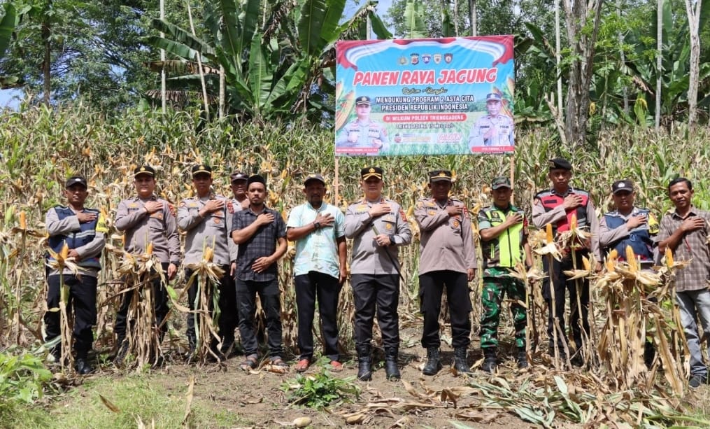 Panen raya digelar di lahan jagung seluas ±3 hektare milik Sdr Azhar, yang merupakan lahan binaan personel Polsek Trienggadeng.