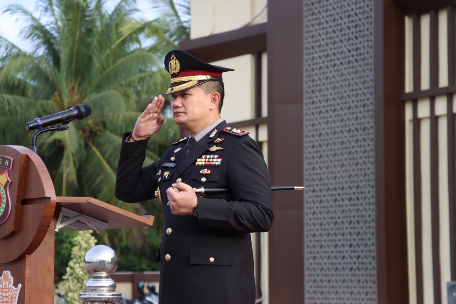 Upacara dipimpin langsung oleh Kapolres Pidie Jaya, AKBP Ahmad Faisal Pasaribu, S.H., S.I.K., M.H., yang bertindak sebagai Inspektur Upacara. Sedangkan Kabag SDM Polres Pidie Jaya, AKP Mahyuddin, S.H., M.M., ditunjuk sebagai Perwira Upacara.
