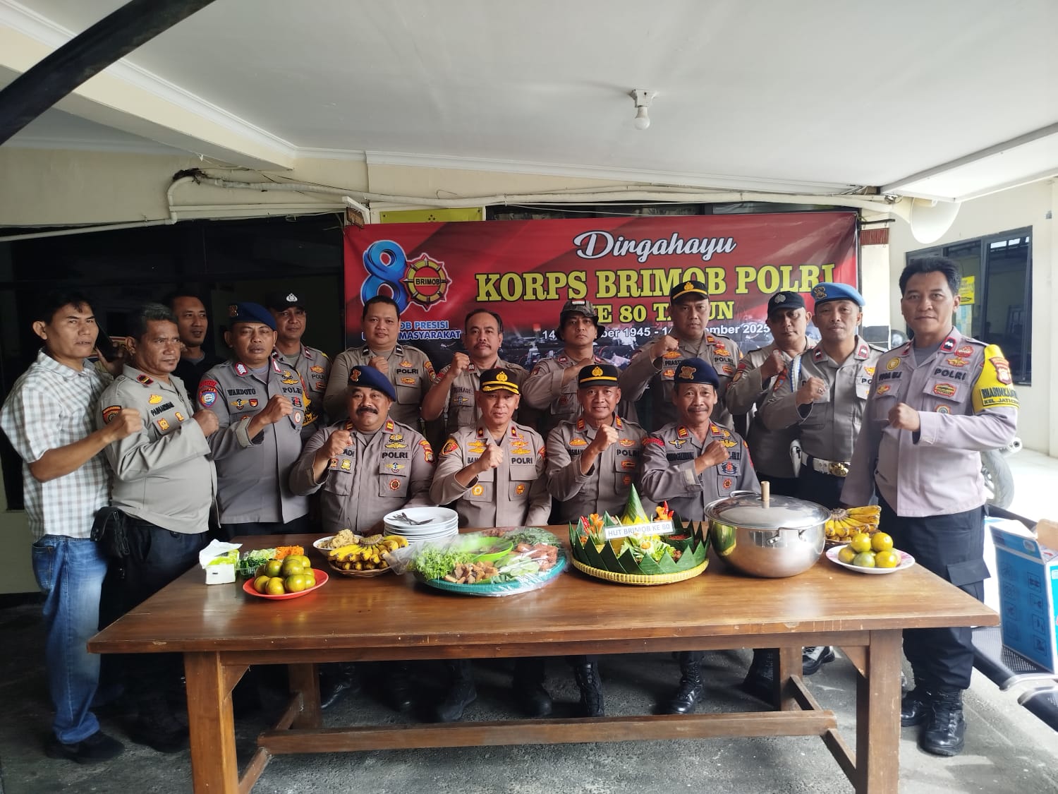 Kapolsek Pondok Gede memimpin langsung acara syukuran HUT Brimob ke-80 dengan penuh khidmat dan sederhana. Ada 10 anggota Brimob di Polsek Pondok Gede yang turut merayakan hari ulang tahun ini.