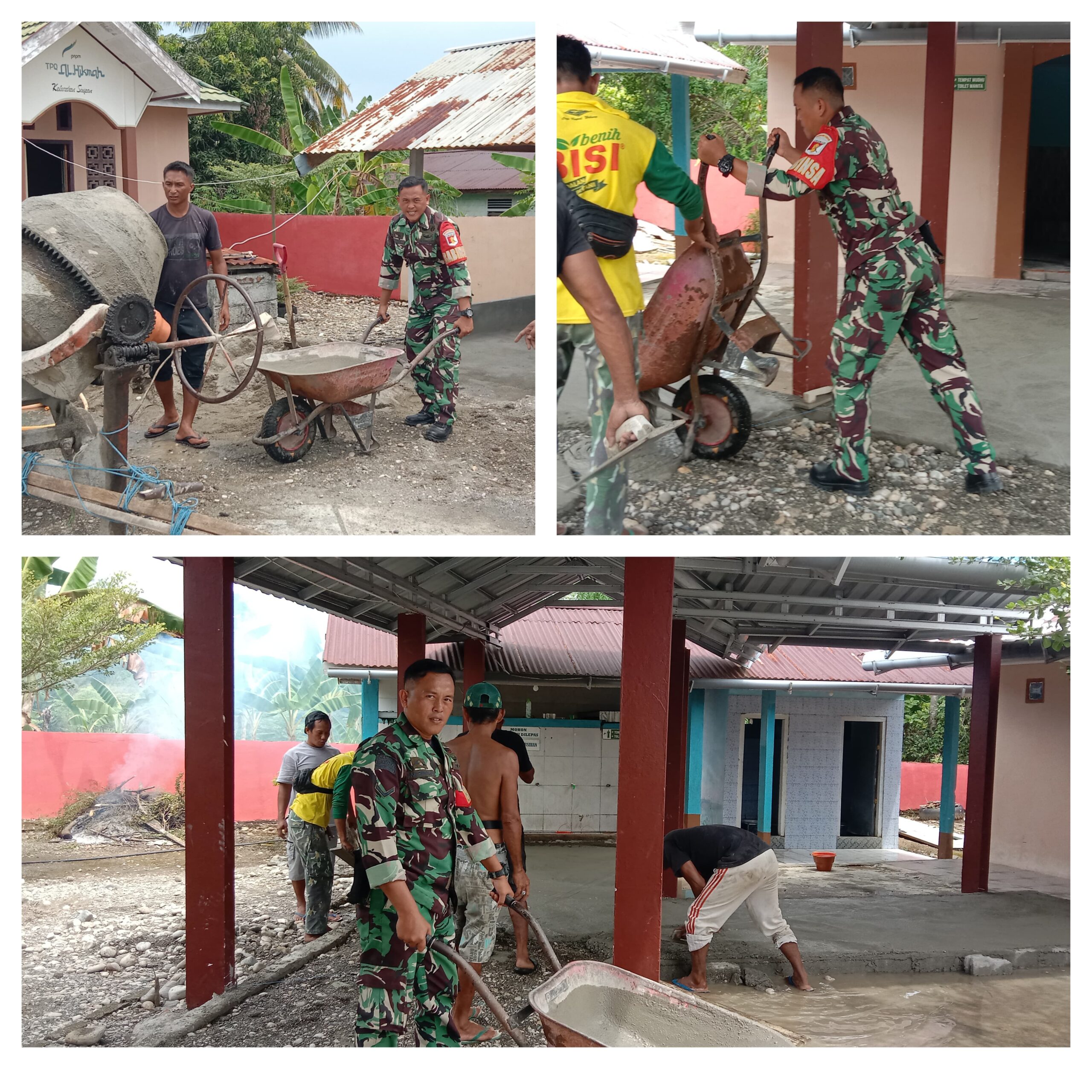 BATUI,Ragamrajawalinusantara.id. –  Babinsa Koramil 03/Batui Jajaran Kodim 1308/LB, Serda Masri Rinaldi, melaksanakan kegiatan Komsos Karya Bhakti Pengecoran Jamban Tempat Air Wudlu Bertempat Di Halaman Mesjid Jami Nurtarbiah Kelurahan Sisipan Kecamatan Batui Kabupaten Banggai, pada Selasa 10Februari 2026 pagi, pukul 08:15 Wita. Kegiatan ini bertujuan untuk menjaga kebersihan dan menciptakan lingkungan yang nyaman di sekitar masjid.
