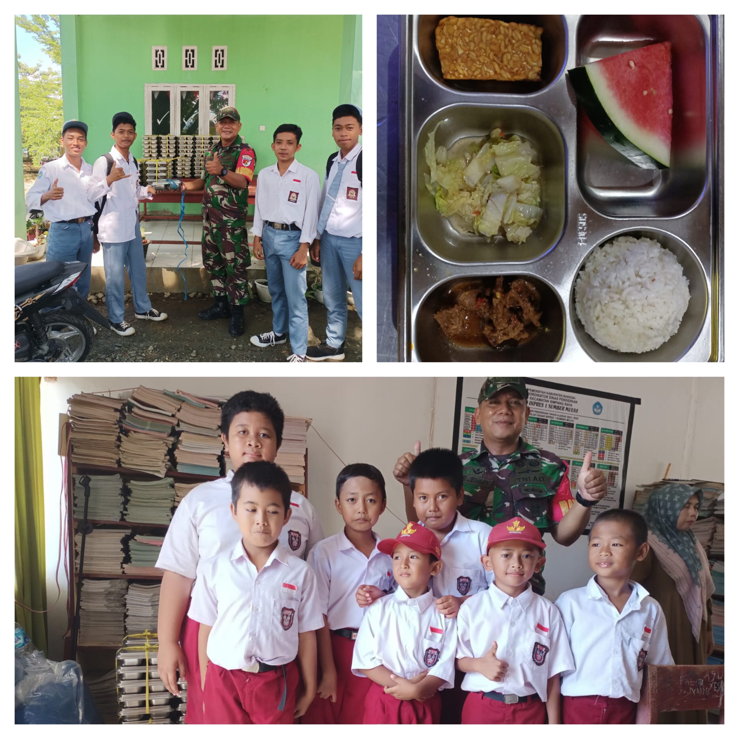“Dengan selalu berkoordinasi dengan pihak pengelola dapur, kepala sekolah, guru, dan perangkat desa untuk kelancaran mekanisme pendistribusian,” kata Babinsa.