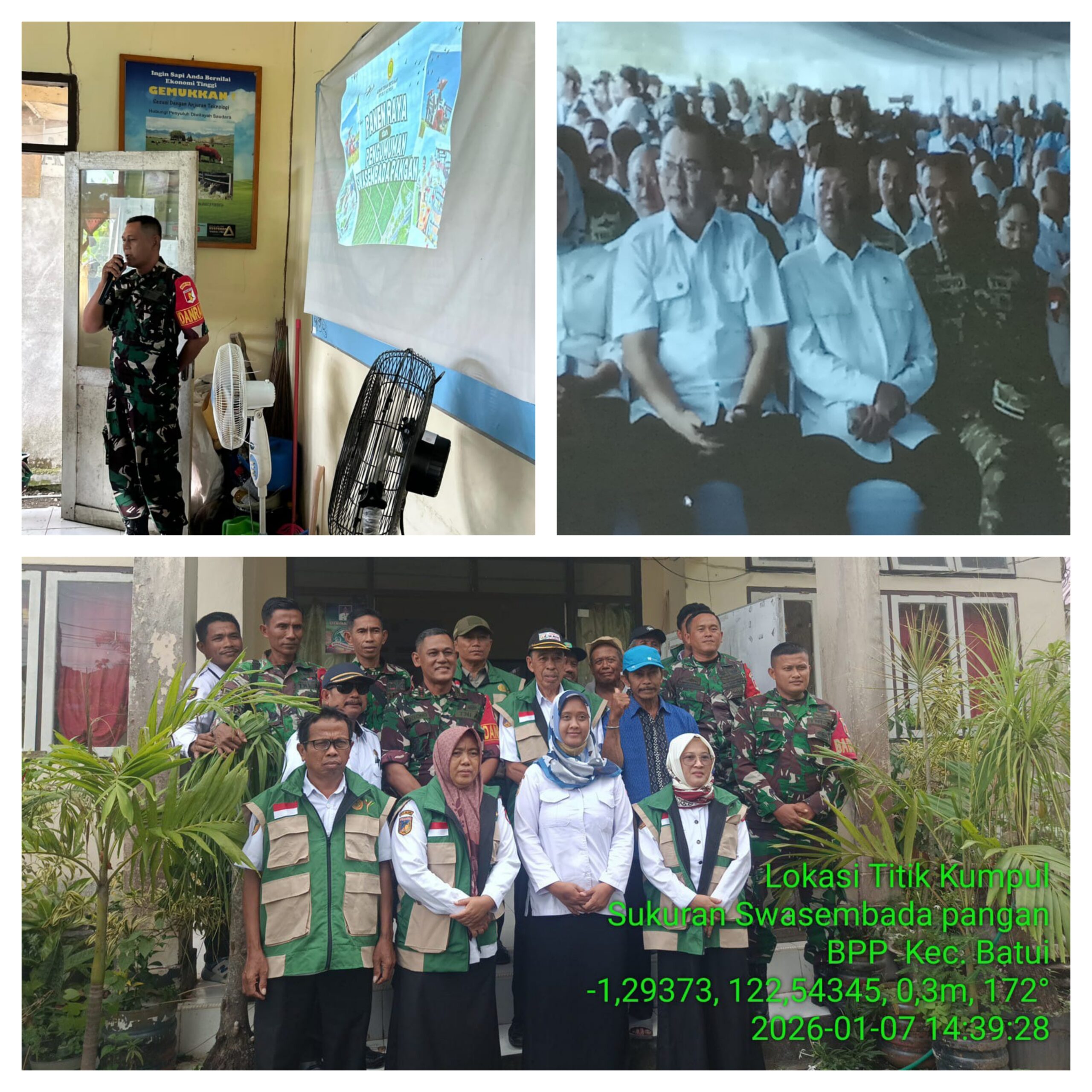 BATUI,Ragamrajawalinusantara.id – Koramil 1308–03/Batui kegiatan Pencapaian Pembangunan Pertanian Tahun 2025 Dan Menyelenggarakan Dan Pengumuman Swasembada Bersama Bapak Presiden RI dan Di Rangkaikan Dengan Rancangan Program Pertanian Tahun 2026 yang disaksikan secara langsung oleh Presiden RI melalui Zoom meeting Bertempat Di Kantor Balai Pertemuan BPP Kelurahan Sisipan Kecamatan Batui Kabupaten Banggai pada Rabu (07/1/26).