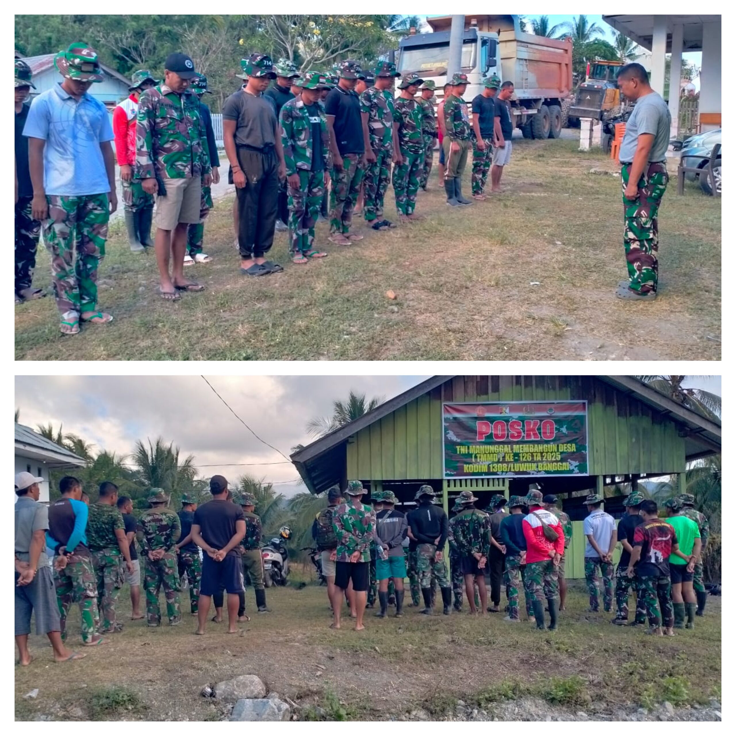 Setelah selesai melaksanakan apel pagi, ditutup dengan doa bersama, dilanjutkan dengan pembagian sektor tugas bagi personel yang tergabung dalam Satgas TMMD.( Pendim 1308/LB )