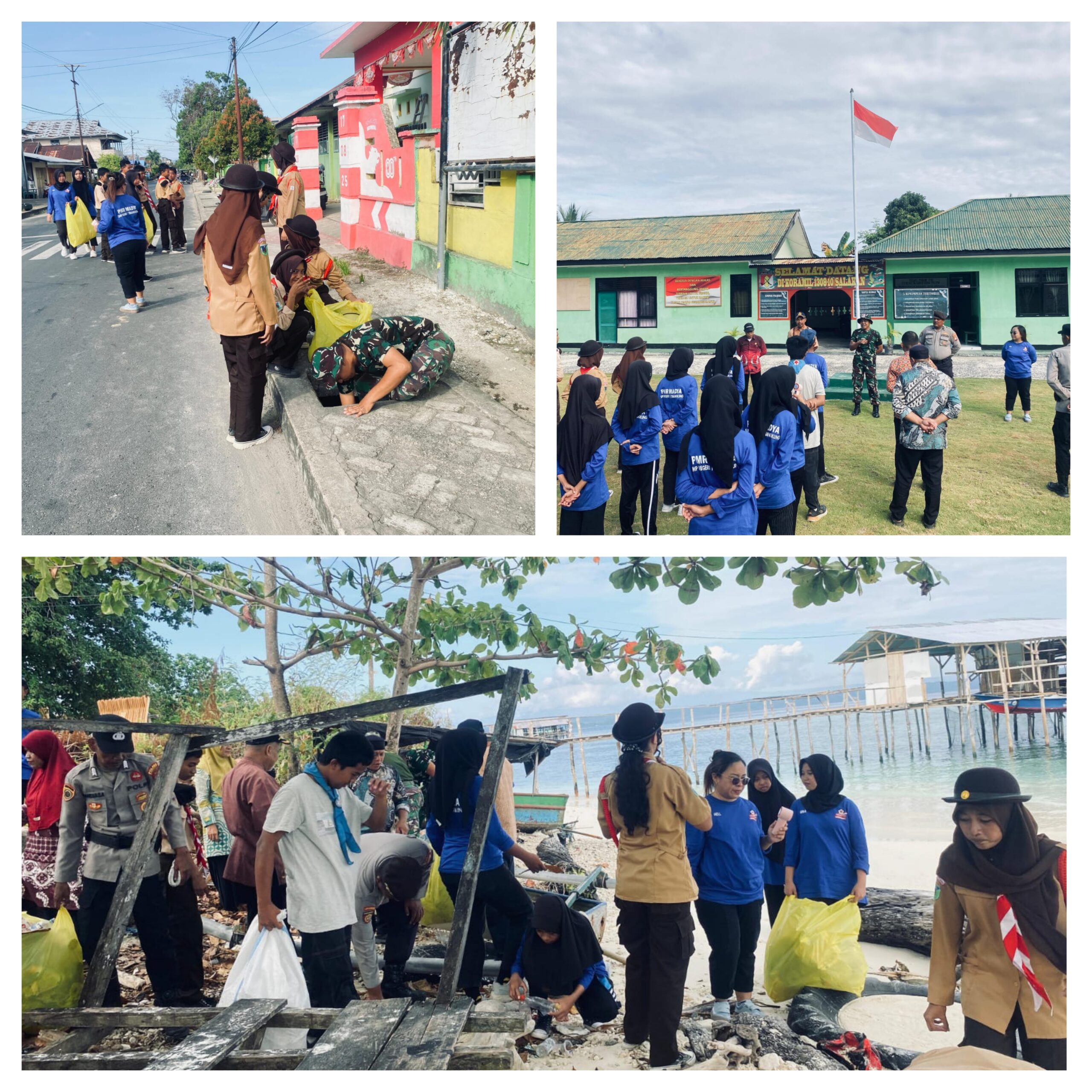 SALAKAN,Ragamrajawalinusantara.id. – Koramil 1308–10/Salakan bersama Polsek Tinangkung, Forkompincam Tinangkung Dan Siswa Siswi SMPN I Tinangkung Melaksanakan Kegiatan Karya Bhakti Pembersihan Fasilitas Umum Bertempat Di Wilayah Koramil 1308–10/Salakan Kabupaten Banggai Kepulauan. Kegiatan yang berlangsung pada Kamis (05/02/2026) kegiatan ini merupakan upaya sinergi antara TNI ,Polri Dan Forkompincam dalam rangka menciptakan lingkungan yang bersih dan sehat bagi masyarakat.
