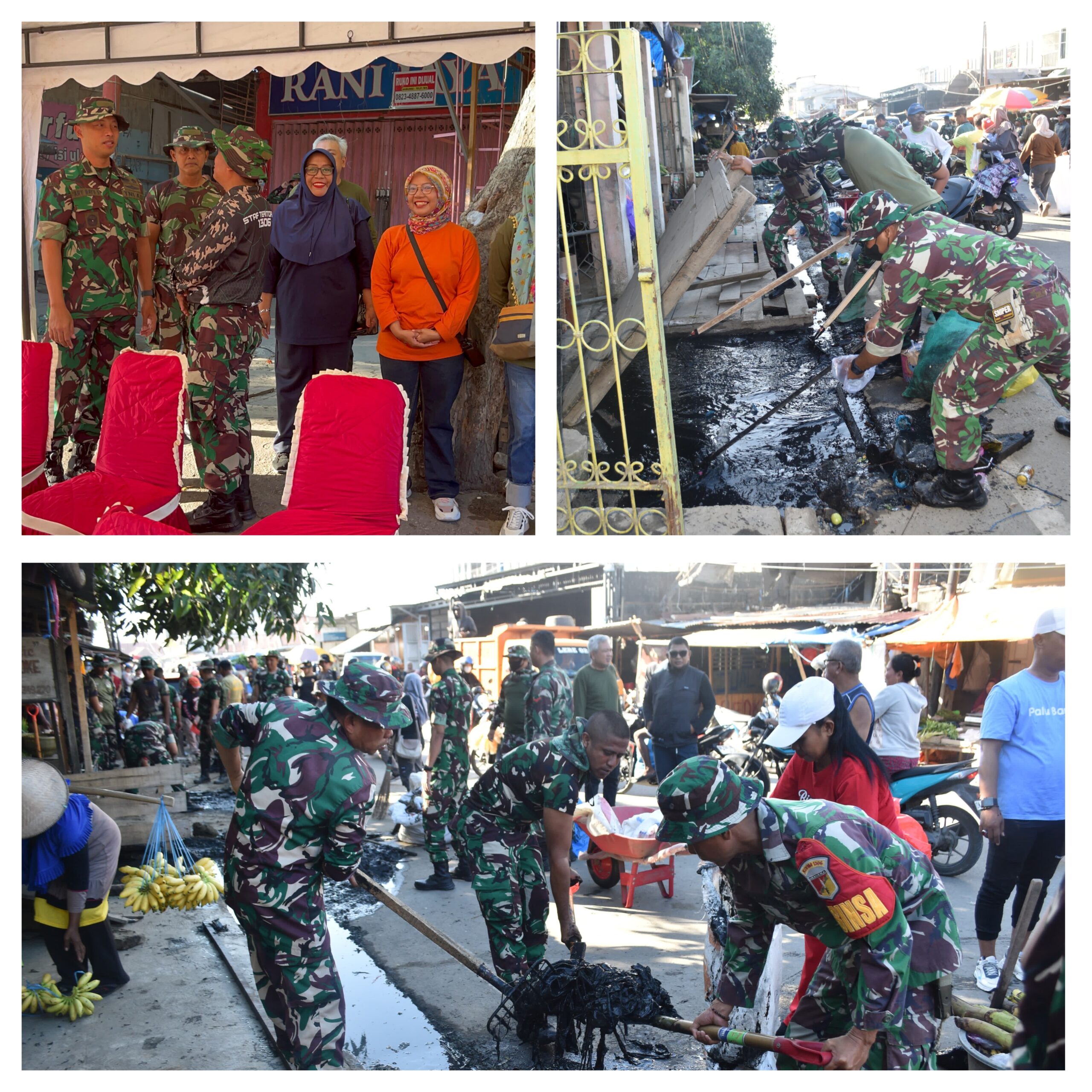 PALU,Ragamrajawalinusantara.id — Pasar Inpres Manonda di Kelurahan Balaroa, Palu Barat, pagi ini tampak berbeda dari biasanya. Bukan karena ramai pembeli, tapi karena ratusan prajurit TNI turun langsung membersihkan sampah dan saluran drainase di kawasan pasar yang terkenal padat itu, Jumat (23/5/2025).