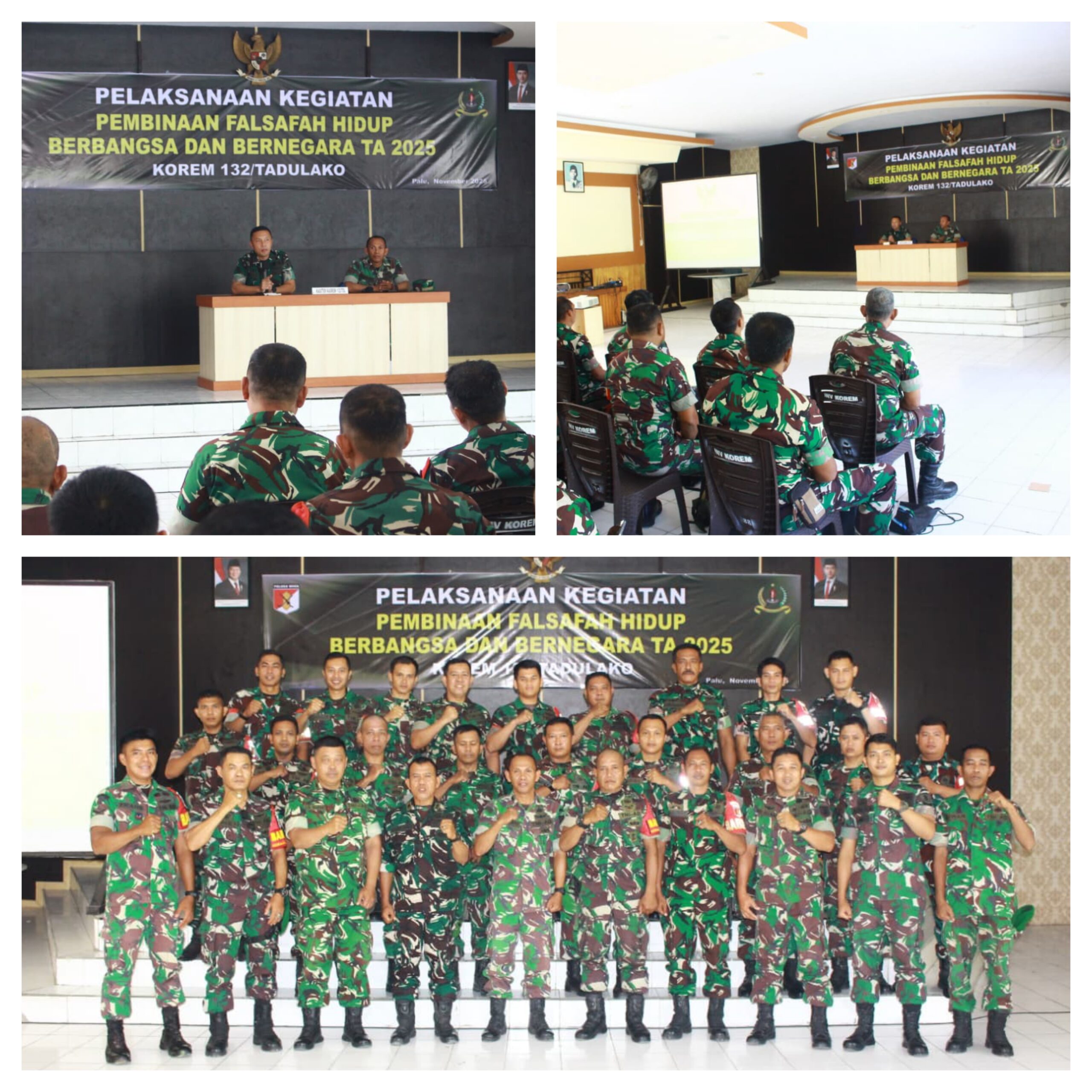 PALU,Ragamrajawalinusantara.id — Korem 132/Tadulako menggelar kegiatan Pembinaan Falsafah Hidup Berbangsa dan Bernegara di Aula Makorem 132/Tdl, Jum’at (28/11/2025) sebagai upaya memperkuat karakter dan jati diri prajurit di tengah pesatnya perkembangan teknologi dan dinamika kebangsaan.