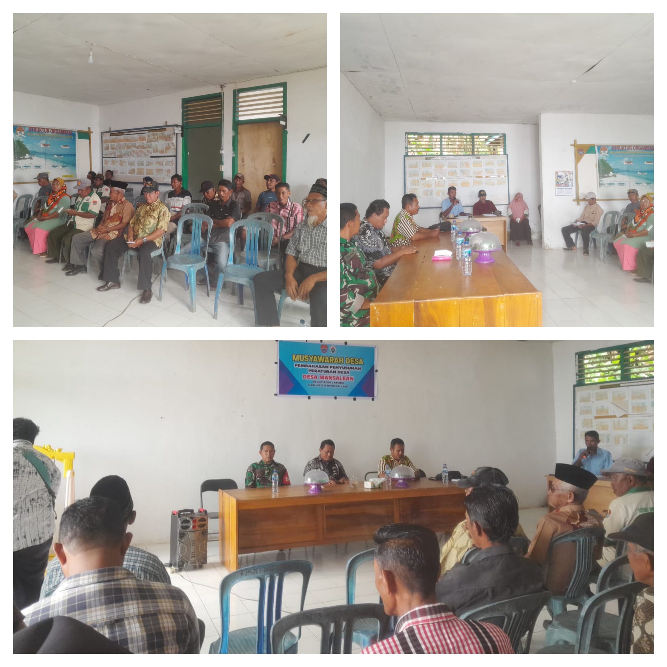 LABOBO,Ragamrajawalinusantara.id – Babinsa Koramil 01/Ba’a Kodim 1627/Rote Ndao, Sertu Yunus Ketty menghadiri Pelaksanakan Rapat Pembahasan Penyusunan Draf Peraturan Desa Mansalean Tentang Pencurian Bertempat Di Kantor BPD Desa Mansalean Kecamatan Labobo Kabupaten Banggai Laut.Kamis