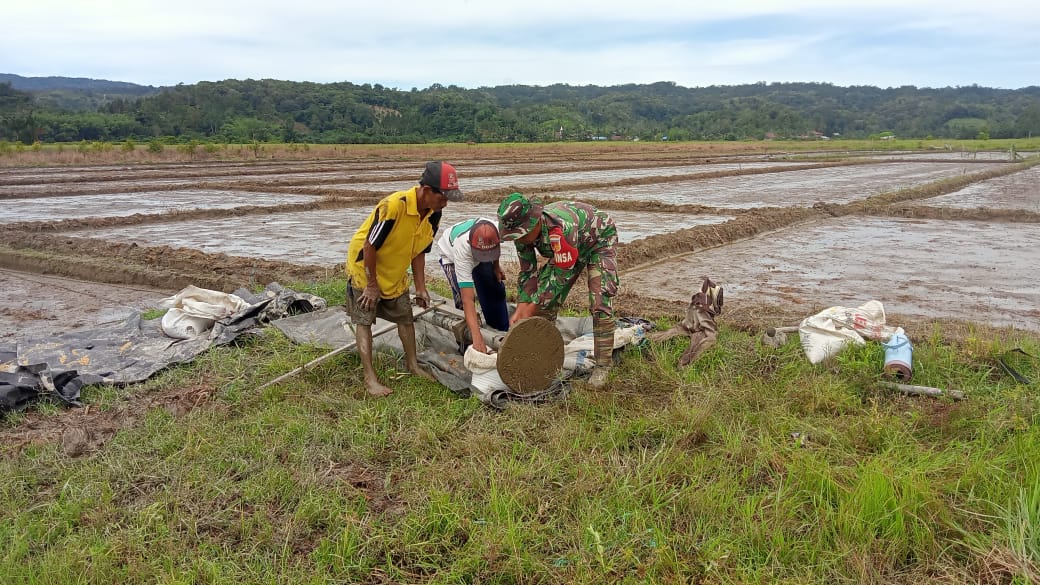 Sertu Yohanis Atto Pasomba mengatakan, kami turun ke sawah untuk membantu petani dengan harapan dapat memberikan motivasi dan nilai positif bagi petani agar lebih bersemangat dalam bekerja guna meningkatkan ketahanan pangan, ujarnya.“Babinsa juga menuturkan, kebutuhan pangan bagi para petani dan masyarakat begitu besar manfaatnya, terlebih saat ini mencari uang tidaklah gampang sehingga para petani harus lebih giat lagi dalam bekerja”, tutur Sertu Yohanis Atto Pasomba.
