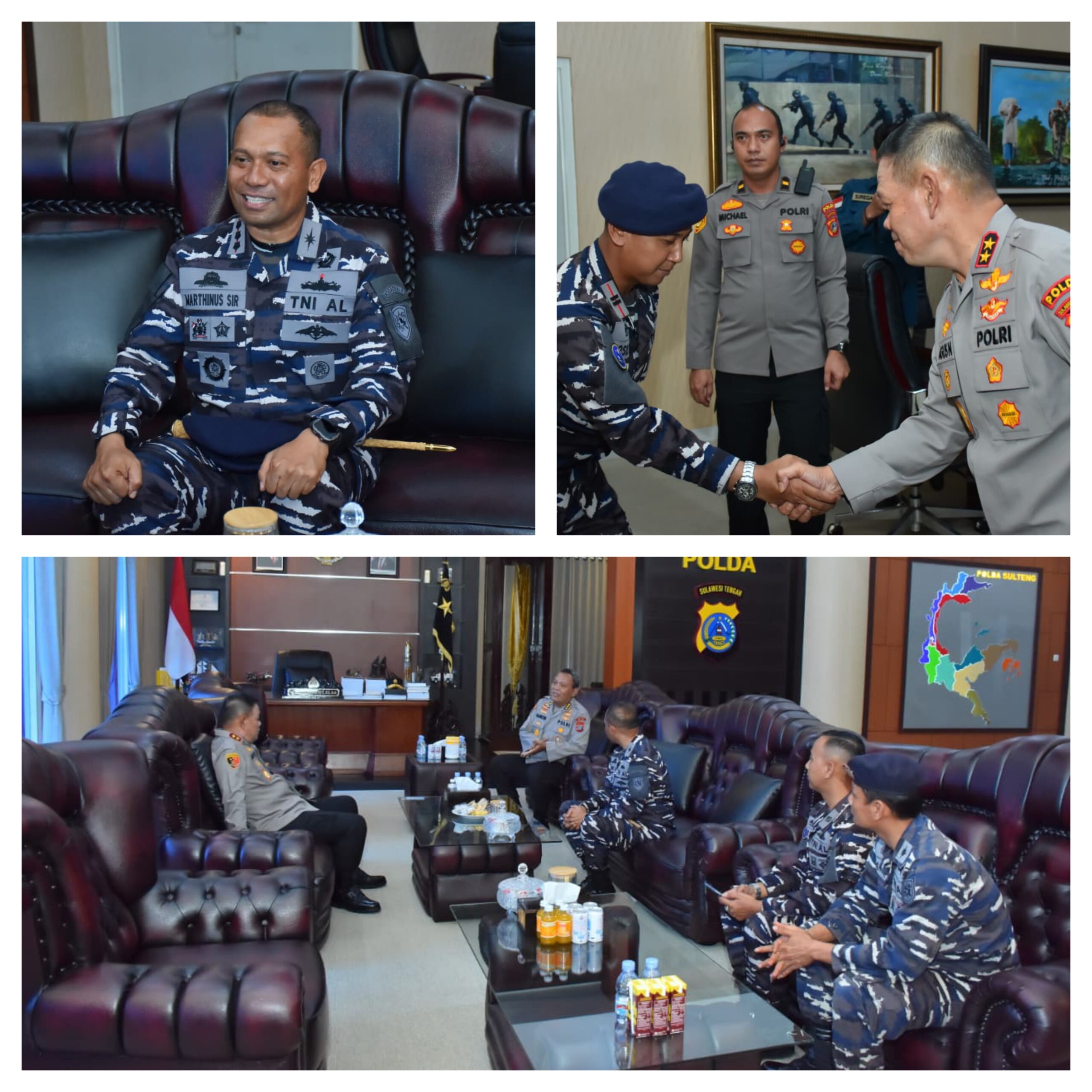 PALU,Ragamrajawalinusantara.id — Kapolda Sulawesi Tengah (Sulteng) Irjen Pol Dr. Agus Nugroho menerima kunjungan silaturahmi Komandan Pangkalan TNI Angkatan Laut (Danlanal) Palu, Kolonel Laut (P) Marthinus Sir, di ruang kerja Kapolda, Rabu (10/9/2025).