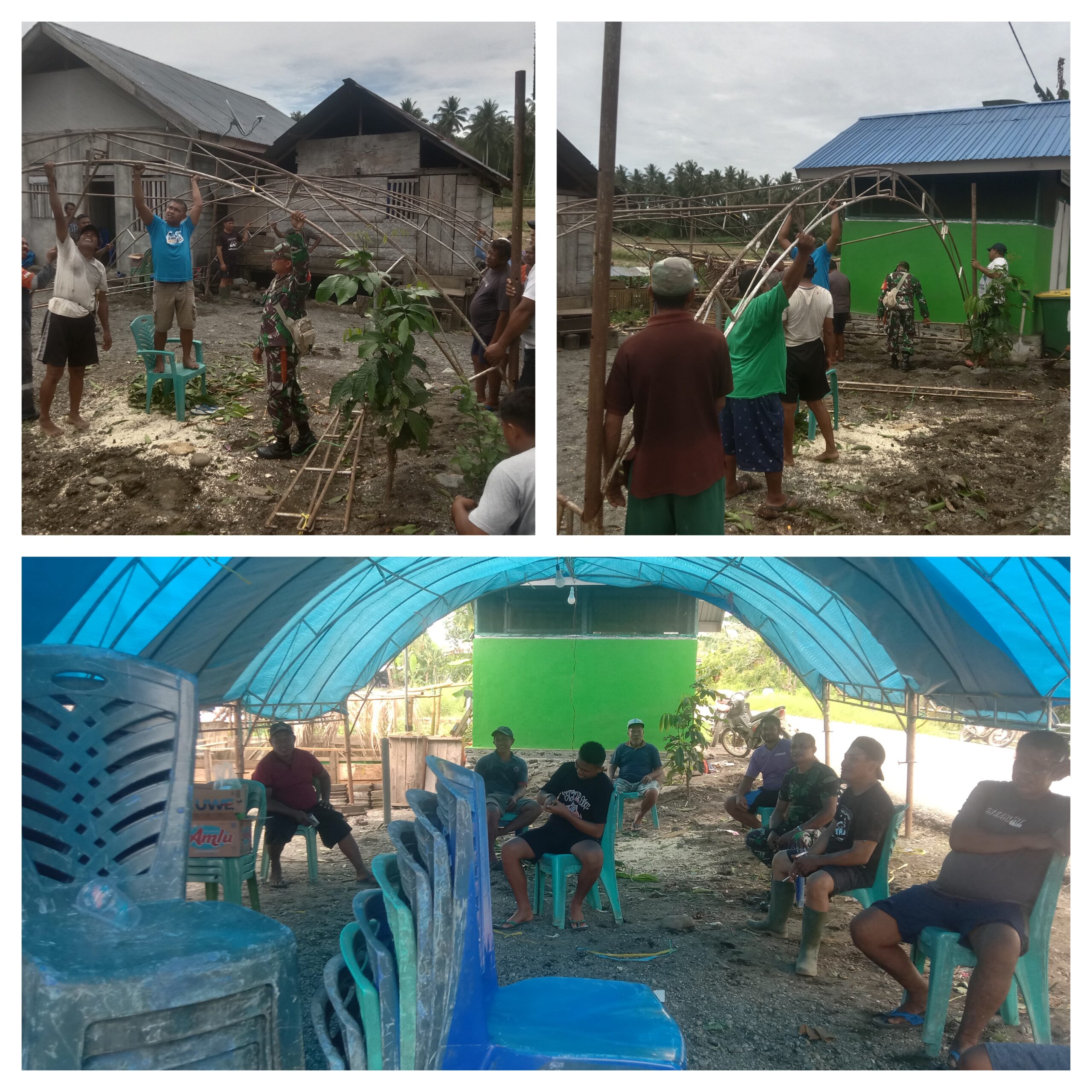 BATUI,Ragamrajawalinusantara.id — Babinsa 1308–03/Batui, Desa Paisu Buloli, Serka Andi Mursit melaksanakan kegiatan bakti sosial Komsos Pemasangan Tenda Persiapan Ibadah Kolom 1 Dalam Rangka Menyambut Natal Dan Tahun Baru Bertempat Di Rumah Kepala Desa, Di Desa Paisu Buloli Kecamatan Batui Selatan Kabupaten Banggai.Kamis (04/12/2025)