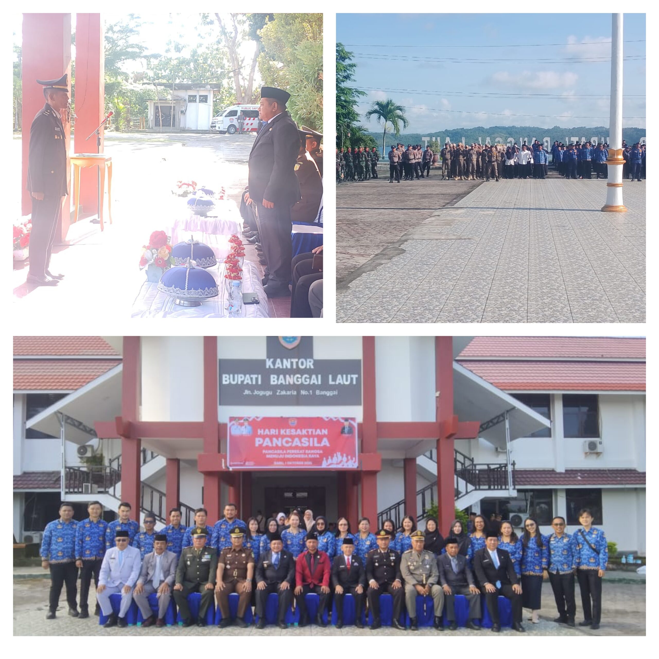 Dalam pelaksanaannya Danramil 08/Banggai Kodim 1308/LB Kapten Inf Agustinu Pajeko Beserta Anggota Babinsa Koramil 08/Banggai Menghadiri Dan Melaksanakan Kegiatan Upacara Peringatan Hari Lahir Pancasila 2025 Berlokasi Bertempat Di Lapangan Kantor Bupati Kelurahan Lampa Kecamatan Banggai Kabupaten Banggai Laut.Rabu(01/10/2025