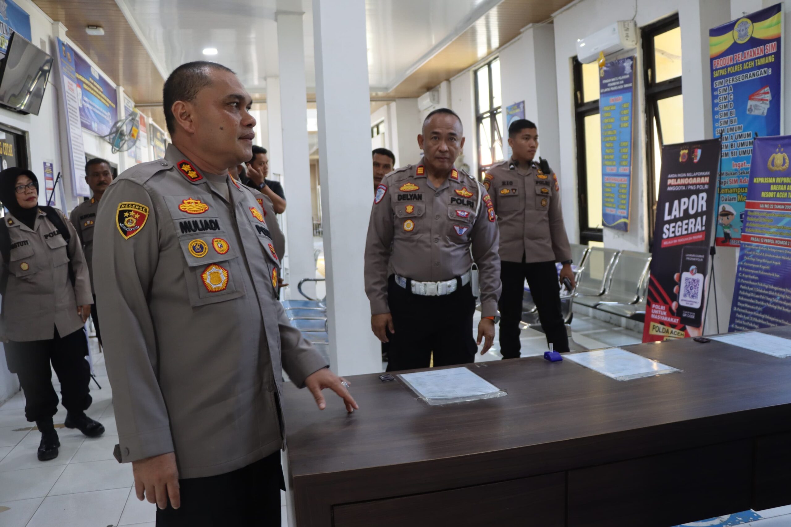 Kapolres Aceh Tamiang AKBP Muliadi, S.H, M.H menjelaskan ” Pengecekan itu untuk memastikan pelayanan yang kita berikan kepada masyarakat dapat berjalan dengan maksimal baik dari segi kenyamanan dan kecepatan dalam memberi akan pelayanan bagi masyarakat.