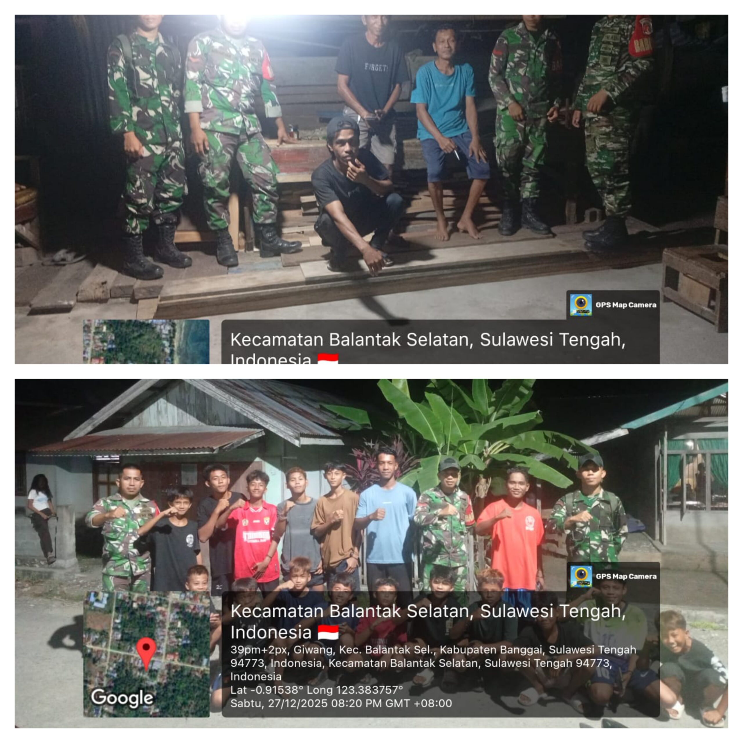 Kegiatan dilaksanakan pada Minggu malam, 27 Desember 2025, mulai pukul 21.00 WITA hingga selesai, dengan titik start dan finish di Makoramil 05/Balantak, dipimpin oleh Kopda Ardiansyah Berserta Anggota Babinsa.