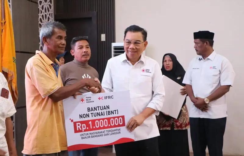 Sementara itu, Ketua PMI Provinsi Aceh, Murdani Yusuf, menjelaskan bahwa kegiatan tersebut merupakan penyerahan perdana bantuan non tunai melalui program PMI Pusat yang didukung para relawan serta staf PMI dari pusat hingga daerah.