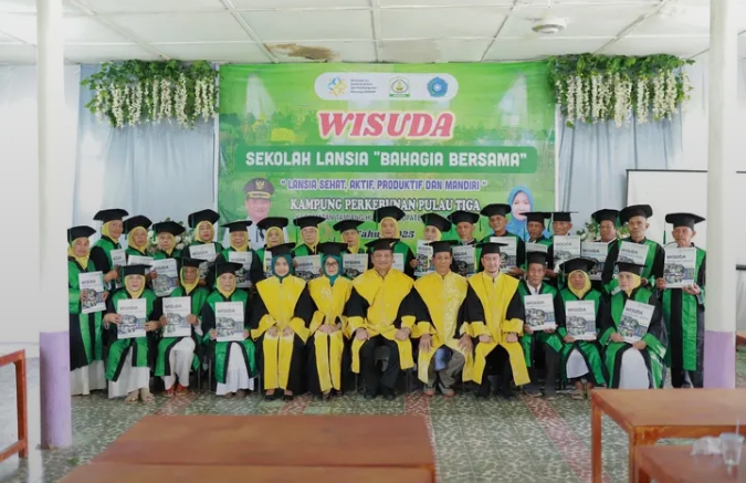 Pemerintah Kabupaten Aceh Tamiang melalui Tim Penggerak PKK dan Dinas Pemberdayaan Masyarakat dan Kampung, Pemberdayaan Perempuan dan Keluarga Berencana menggelar Wisuda Sekolah Lansia Bahagia Bersama, bertempat di Learning Center PTPN IV Perkebunan Pulau Tiga, Minggu (26/10/25).